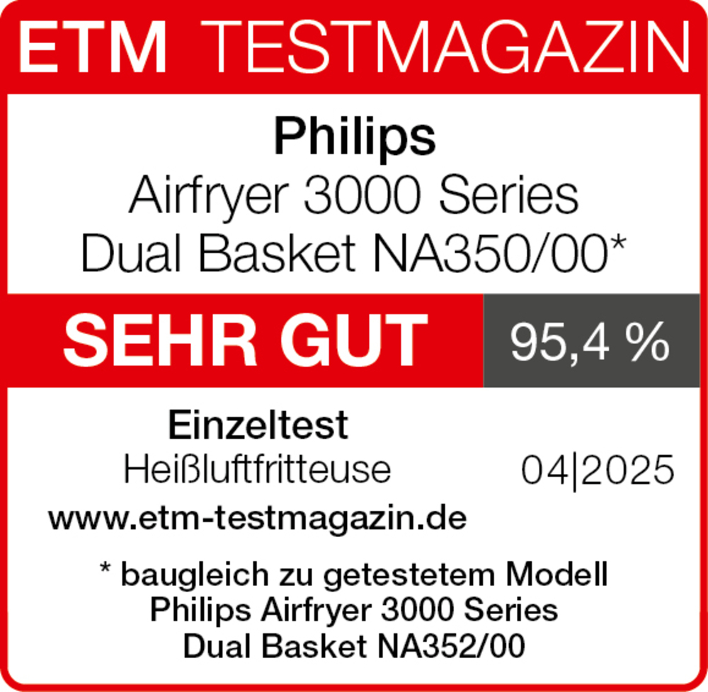 Der Airfryer mit der perfekten Familiengröße von insgesamt 9L . Bereite ganze Mahlzeiten im großen 6L Korb zu (z.B. bis zu 1,5 kg Rosenkohl oder ein 1,5 kg Hähnchen). Zusätzlich steht der kleine Korb mit weiteren 3L separat zur Verfügung.