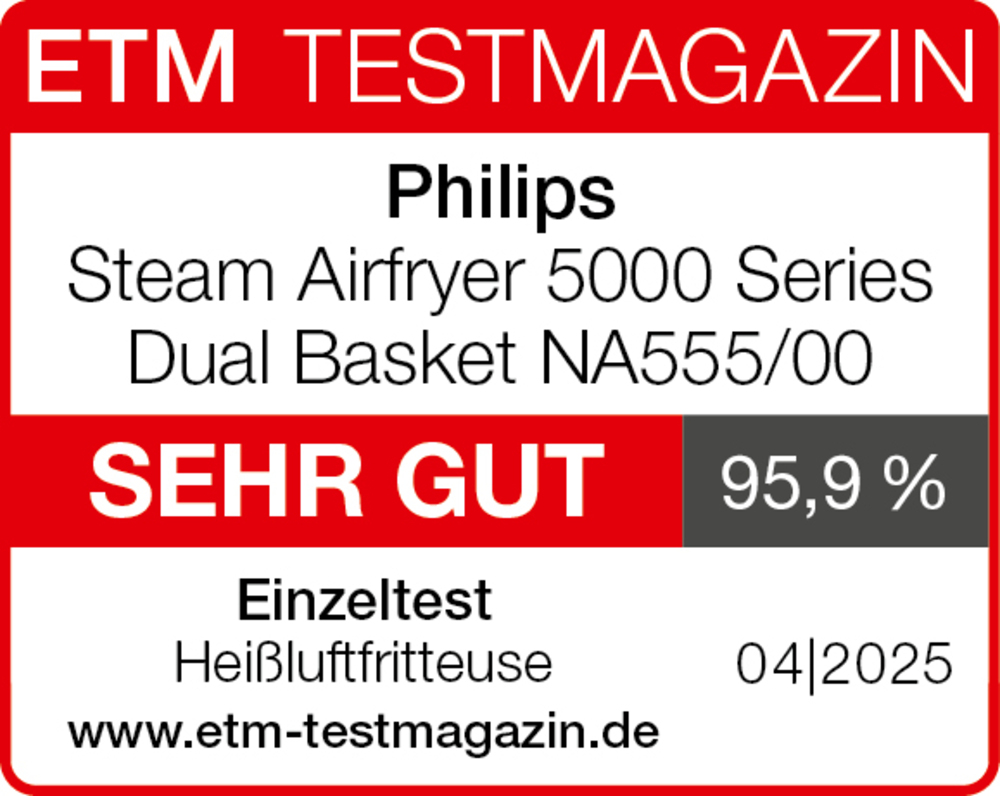 Mit nur einem Tastendruck aktivierst du die Timer-Funktion und stimmst die Garzeiten in beiden Körben perfekt ab, sodass die Speisen gleichzeitig fertig sind und frisch, heiß und lecker serviert werden können.