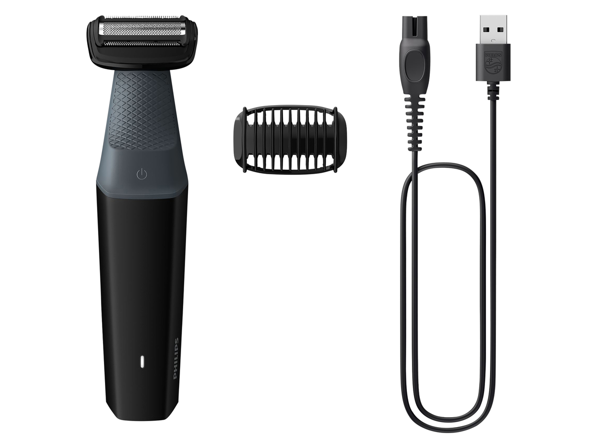 Der Series 3000 wurde für eine sanfte und gründliche Körperpflege entwickelt und entfernt Haare effektiv, ohne den Hautkomfort zu beeinträchtigen. Die 2D-Konturenanpassung sorgt dafür, dass sich der Scherkopf optimal an empfindliche Körperstellen anpasst, während die Hautschutztechnologie eine besonders schonende Rasur ermöglicht. Je nach Bedarf kann das hautfreundliche Schersystem direkt genutzt oder mit dem 3-mm-Kammaufsatz zum Trimmen eingesetzt werden. Features: Sanfte und gründliche Körperpflege 2D-Konturenanpassung für empfindliche Stellen Hautschutztechnologie für schonende Rasur Direktes Schersystem oder 3mm Trimmer Wasserfest und drahtlos nutzbar Technische Daten: Produktfarbe: Schwarz, Grau Anzahl der Längenschritte: 1 Rasierapparatsystem: Folienschaber Nass & Trocken: Ja Drahtlos: Ja Wasserfest: Ja Energiequelle: Akku Akku-/Batterietechnologie: Nickel-Metallhydrid (NiMH) Betriebsdauer: 50 min Akkuladezeit: 8 h Stromverbrauch (max.): 5 W Lieferumfang: 1x Trimmer 1x 3mm Aufsatz 1x Ladekabel