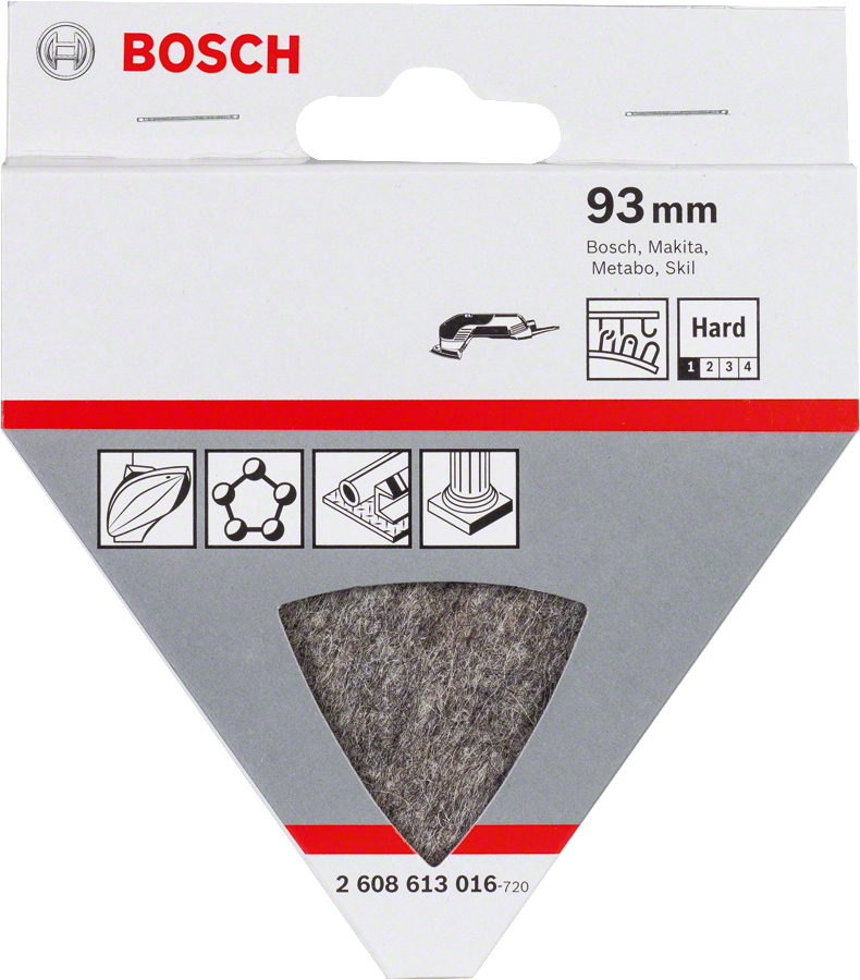Polierfilz, Hart Der Polierfilz ist geeignet zum Vorpolieren von verschmutzten oder verkratzten Lackoberflächen mit Polier- oder Schleifpaste. Er ist für Deltaschleifer geeignet. Härtegrad: hart, Blattabmessung mm: 93 - Breite: 10,5 cm, - Gewicht: 0,02 kg, - Höhe: 1 cm, - Länge: 11,8 cm