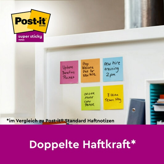 Im Vergleich zu Post-it® Standard Notes haften sie doppelt so stark und halten länger