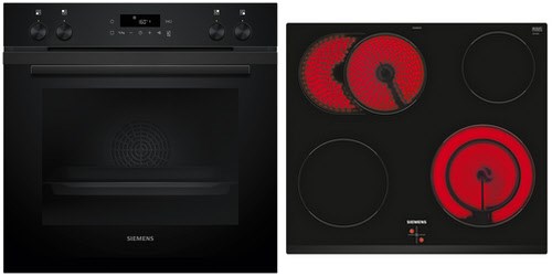 Einbau-Geräte-Set Siemens PQ212KAAB Mit dem PQ212KAAB bietet Siemens Ihnen ein Einbau-Geräte-Set, welches aus einem Einbauherd und einem Glaskeramikfeld besteht. Für niedrige Kosten steht der Verbrauch von gerade mal 0,94 kWh bei Ober-/Unterhitze und 0,69 kWh bei Heißluft/Umluft. Im Durchschnitt liegende 71 Liter Innenraumvolumen haben Platz für Backwaren und Co. Pfannen und Töpfe finden bei diesem Einbau-Geräte-Set auf insgesamt 4 Kochzonen Platz. Cleveres Zubereiten mit den richtigen Programmen Die Backofenprogramme 3D-Heißluft und Schnellvorheizfunktion ergänzen die konventionellen Beheizungsarten Ober-/Unterhitze. Tolle Krusten entstehen unter Zuhilfenahme des Umluftgrills. Das PQ212KAAB steht Ihnen mit den 10 Automatikprogrammen als smarter Küchenhelfer zur Seite. Gut zu wissen Die pyrolytische Selbstreinigungsfunktion lässt Schmutz und Speiserückstände ganz einfach zu Asche zerfallen. Die Elektronik-Uhr gewährleistet, dass Sie die Zeit immer im Blick haben. Der Lieferumfang des PQ212KAAB enthält 1 Kombi Back-/Grillrost, 1 Grillrost und 1 Universalpfanne. Unsere Kaufempfehlung Das PQ212KAAB überzeugt mit einer energieeffizienten Leistung.