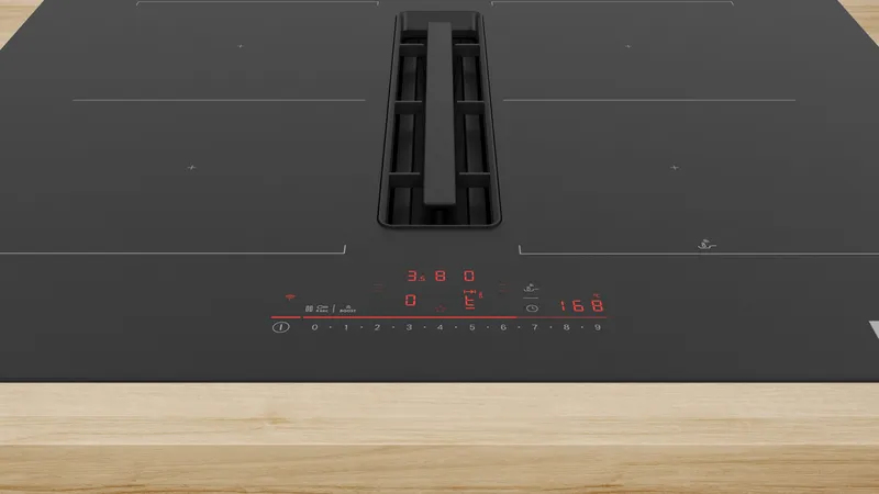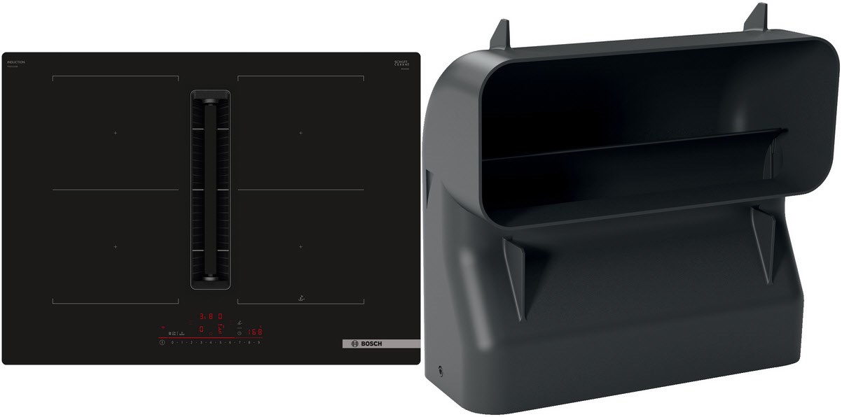 70 cm: Platz für 4 Töpfe oder Pfannen Flexibilität der Kochzonen 2 Combi Zonen: Bei Verwendung von größerem Kochgeschirr werden zwei Kochzonen zu einer größeren verbunden. Kochzone vorne links: 190 mm, 210 mm, 2.5 kW (maximale Leistung 3.7 kW) Kochzone hinten links: 190 mm, 210 mm, 2.5 kW (maximale Leistung 3.7 kW) Kochzone hinten rechts: 190 mm, 210 mm, 2.5 kW (maximale Leistung 3.7 kW) Kochzone vorne rechts: 190 mm, 210 mm, 2.5 kW (maximale Leistung 3.7 kW) Benutzerfreundlichkeit DirectSelect: Steuern Sie die Leistung direkt mit der aufgedruckten Touch-Leiste. Favoriten-Taste: Mit einer konfigurierbaren Taste direkt auf Lieblingsfunktionen zugreifen. 17 Leistungsstufen: Stellen Sie die Hitze mit 17 Leistungsstufen (9 Hauptstufen und 8 Zwischenstufen) präzise ein. Warmhalte-Funktion, wählbar über Favoritentaste/Home Connect App (voraussichtliche Verfügbarkeit in Q4/2024 über Software-Update für mit Home Connect verbundene Geräte): Warmhalten von Speisen bei voreingestellter niedriger Leistungsstufe. Abschalttimer: schaltet die Kochzone am Ende der eingestellten Zeit aus (z. B. für gekochte Eier). Wecker (kann anstelle des Abschalttimers ausgewählt werden): Ein Signal ertönt am Ende der eingestellten Zeit (z. B. beim Pastakochen). Die Lautstärke der Signaltöne kann an die persönlichen Vorlieben und Bedürfnisse angepasst werden. Zeitersparnis und Effizienz PowerBoost-Funktion für alle Kochzonen: Mit 50 % mehr Leistung z. B. Wasser schneller zum Kochen bringen als auf höchster Leistungsstufe. Pan Boost, wählbar über Favoritentaste/Home Connect App (voraussichtliche Verfügbarkeit in Q4/2024 über Software-Update für mit Home Connect verbundene Geräte): Erhitzt Pfannen schneller als auf höchster normaler Leistungsstufe und schützt gleichzeitig die Pfannenbeschichtung. QuickStart: Beim Einschalten wählt das Kochfeld automatisch die Kochzone aus, auf dem im ausgeschaltetem Zustand Kochgeschirr aufgesetzt wurde. ReStart: Im Falle von unbeabsichtigtem Ausschalten des Kochfeldes bleiben alle Einstellungen erhalten, wenn Sie innerhalb von 4 Sekunden wieder einschalten. Kochunterstützung 11 Bratbereiche: Verhindert ein Anbrennen durch die automatische Temperaturregelung des Sensors. Kochassistent: Einfach über die Home Connect-App die richtige Temperatureinstellung für ein bestimmtes Gericht finden. Konnektivität Home Connect Funktion (WLAN): Überprüfen Sie, ob das Kochfeld auch dann ausgeschaltet ist, wenn Sie nicht zu Hause sind, und suchen Sie in der Home Connect-App nach Rezepten oder zusätzlichen Funktionen. Smart Home Trigger (verfügbar mit verbundenem Home Connect-Konto): Öffnen Sie mit der Favoriten-Taste das intelligente Universum Ihres Kochfelds und steuern Sie andere Smart Home Geräte aus Ihrem Haushalt (Partnerservice erforderlich). Aktualisierbares Gerät (verfügbar mit verbundenem Home Connect-Konto): Halten Sie das Gerät immer auf dem neuesten Stand der Software. Design Rahmenlos Sicherheit < li>2-stufige Restwärmeanzeige je Kochzone: Zeigt an, welche Kochzonen noch heiß oder warm sind. Kindersicherung: Verhindert eine unbeabsichtigte Aktivierung des Kochfeldes. Hauptschalter: Alle Kochzonen auf einmal ausschalten. Automatische Sicherheitsabschaltung: Aus Sicherheitsgründen schaltet sich das Kochfeld nach einer voreingestellten Zeit ohne Interaktion automatisch ab. Installation Maße des Gerätes (HxBxT mm): 223 x 710 x 522 Erforderliche Nischengröße (HxBxT mm): 223 x 560 x (490 - 490) Minimale Arbeitsplattenstärke: 16 mm Gesamtanschlusswert: 7400 W PowerManagement Funktion: Bei Bedarf die maximale Leistung begrenzen (abhängig von der Absicherung der Elektroinstallation). Netzkabel: 110 cm, Anschlusskabel beigelegt in Verpackung Zubehör Clean Air Plus Geruchsfilter, Teleskopschieberelement für Umluft beigelegt Integriertes Downdraft- Lüftungssystem Induktionskochfeld mit vollintegriertem, leistungsstarkem Downdraft- Abzugsmodul. Geeignet für Umluft- oder Abluftbetrieb (inkl. differenzierter Softwaremodi). Installationszubehör für ungeführte Umluft, darunter vier cleanAir Plus-Geruchsfilter und ein Teleskop- Schiebeelement, sind im Lieferumfang des Kochfeldes enthalten. Zubehör für andere Einbaumöglichkeiten ist erhältlich, Details in den Planungshinweisen. Ästhetisch integriertes, flächenbündiges Lufteinlassdesign mit schwebendem, hitzebeständigem Glaskeramikelement für freie Bewegung und Platzierung des Kochgeschirrs