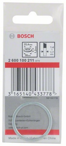 Reduzierring 30x25.4x1.2 Der Reduzierring für Kreissägeblätter verfügt über ein verstellbares Loch für einen perfekten Sitz auf jeder Maschine. Durchmesser mm: 30,0, Bohrung mm: 25,400, Dicke mm: 1,2 - Breite: 4,7 cm, - Gewicht: 0,003 kg, - Höhe: 0,2 cm, - Länge: 10,6 cm