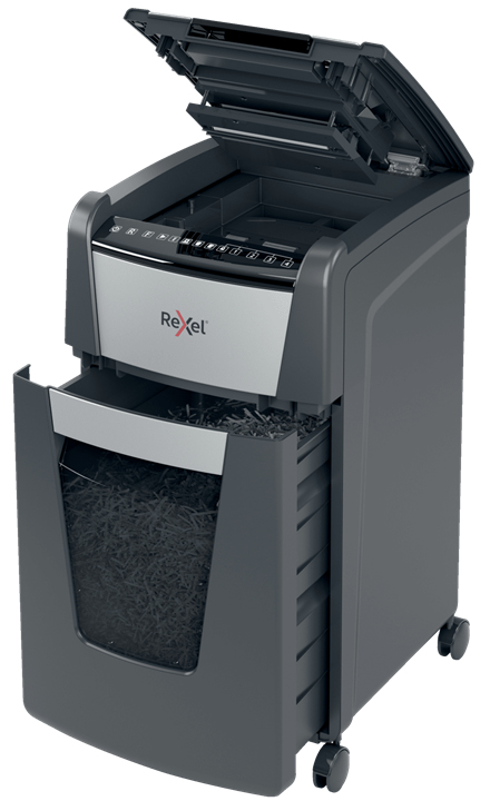 Partikel, Schnittleistung: 300 Blatt, Auffangvolumen: 60Liter, Arbeitsbreite: 230 mm, Sicherheitsstufe: P-5, ver-nichtet Kreditkarten/Büro-/Heftklammern, automatischePapierzufuhr, mit Lenkrollen, schwarz, CH-Stecker(2020300MCH)mit PIN-Code-Sperre der PapierkammerAktenvernichter Optimum AutoFeed+ 300X / 300M&bull, automatische Papierzufuhr: keine manuelle Arbeit nötig - Papier einlegen und Deckel schließen &bull, bei Bedarf können auch bis zu 10 Blatt (300X) bzw. 8 Blatt (300M) pro Vorgang manuell zugeführt werden Anti-Papierstau-Technologie&bull, herausziehbarer Auffangbehälter mit Sichtfenster Füllstandanzeige des Auffangbehälters durch Infrarot-Sensor einfache Bedienung durch Touch-Control-Tasten & PIN-Code-Sperre der Papierkammer für noch mehr Sicherheit automatische Abschaltung nach 3 Minuten Inaktivität mit Lenkrollen für einfache und komfortable Bewegung des AktenvernichtersTechnische Daten:&bull, Arbeitsbreite: 230 mm &bull, Arbeitszyklus: 60 Minuten&bull, akzeptiert vergessene Heft- oder Büroklammern und vernichtet Kreditkarten&bull, Maße: (B)415 x (T)465 x (H)735 mm &bull, Gewicht 300X: 22 kg / 300M: 23 kg Anwendungsbeispiele:- für Unterlagen mit geheim zu haltenden Informationen mit existenzieller Wichtigkeit für eine Person, ein Unternehmen oder Einrichtung- z.B. für Patente, Konstruktionsunterlagen, Strategiepapiere, Wettebewerbsanalysen, Prozessunterlagen