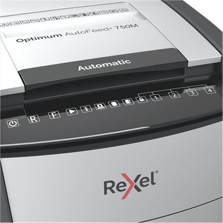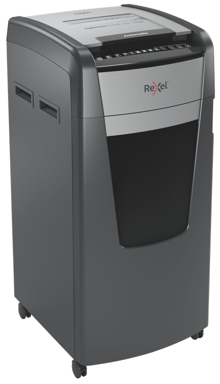 Partikel, Schnittleistung: 750 Blatt, Auffangvolumen: 140Liter, Arbeitsbreite: 230 mm, Sicherheitsstufe: P-5, ver-nichtet Kreditkarten/Büro-/Heftklammern, automatischePapierzufuhr, mit Lenkrollen, schwarz, CH-Stecker(2020750MCH)mit PIN-Code-Sperre der PapierkammerAktenvernichter Optimum AutoFeed+ 750X / 750M&bull, automatische Papierzufuhr: keine manuelle Arbeit nötig - Papier einlegen und Deckel schließen &bull, bei Bedarf können auch bis zu 20 Blatt (750X) bzw. 15 Blatt (750M) pro Vorgang manuell zugeführt werden Anti-Papierstau-Technologie&bull, herausziehbarer Auffangbehälter in die Tür integrierter Beutelspender für einfaches Wechseln des Abfallsacks Füllstandanzeige des Auffangbehälters durch Infrarot-Sensor einfache Bedienung durch Touch-Control-Tasten & PIN-Code-Sperre der Papierkammer für noch mehr Sicherheit automatische Abschaltung nach 3 Minuten Inaktivität mit Lenkrollen für einfache und komfortable Bewegung des AktenvernichtersTechnische Daten:&bull, Arbeitsbreite: 230 mm &bull, Arbeitszyklus: 240 Minuten&bull, akzeptiert vergessene Heft- oder Büroklammern und vernichtet Kreditkarten&bull, Maße: (B)510 x (T)570 x (H)1.062 mm &bull, Gewicht 750X: 63,2 kg / 750M: 71 kg Anwendungsbeispiele:- für Unterlagen mit geheim zu haltenden Informationen mit existenzieller Wichtigkeit für eine Person, ein Unternehmen oder Einrichtung- z.B. für Patente, Konstruktionsunterlagen, Strategiepapiere, Wettebewerbsanalysen, Prozessunterlagen
