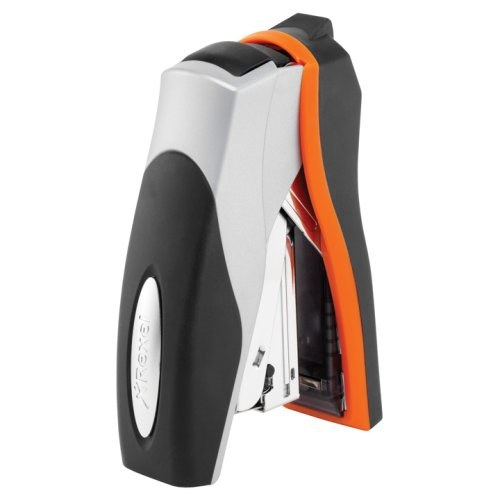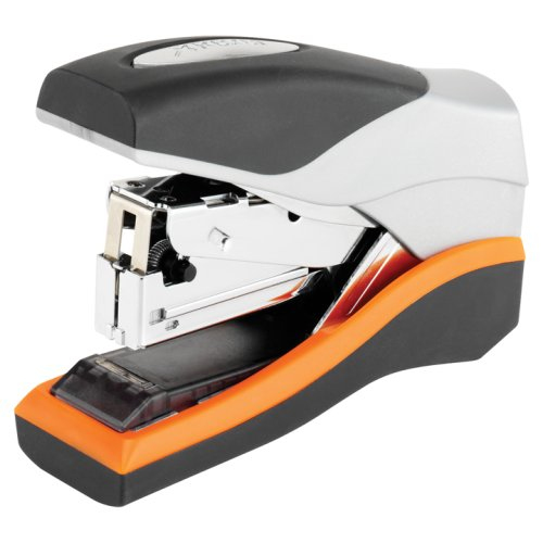 Rexel Flachheftgerät Optima 40 Compact; Mit Oberlademechanik, für geschlossene Heftung; Bei Verwendung von Optima Heftklammern bietet er platzsparende Flachheftung mit bis zu 50% weniger Kraftaufwand; Mit Heftklammer-Vorratsfach zur Aufbewahrung von Reserve-Heftklammern; Material: Metall; Heftleistung: 4 mm/40 Blatt; Heftklammern: Optima Nr. 56; Einlegetiefe: 70 mm; Farbe: orange/silber/schwarz;