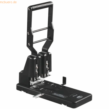Rexel Registraturlocher HD2300; Robuster Zweifachlocher für hohe Beanspruchung; Mit verstellbarer Einlegetiefe von 9-17 mm; Mit Anschlagschiene aus Metall; Mit ausziehbarem, transparentem Kunststoffboden (Abfallkasten); Stanzleistung/Blatt: 30 mm/300 Blatt; Material: Metall; Farbe: schwarz;