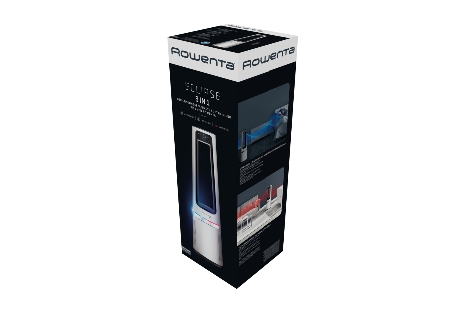 Rowenta Eclipse 3-in-1 QU5060 Luftreiniger schwarz 33 W: effektive Luftreinigung für mehr WohlbefindenMit dem Rowenta Eclipse 3-in-1 QU5060 Luftreiniger schwarz 33 W profitieren Sie von einer durchdachten Technologie, die Ihnen ein gesundes Raumklima bietet. Das hocheffiziente Filtersystem fängt Staub, Pollen und andere schädliche Partikel aus der Luft ein und sorgt so für eine spürbare Frische in Ihren Räumen.Passend für Ihre Räumlichkeiten?Die 12 Leistungsstufen bieten Ihnen die Möglichkeit, die Betriebsstärke präzise zu regulieren. Der CADR-Wert ("Clean Air Delivery Rate") gibt die Effizienz bei der Entfernung bestimmter Schadstoffe aus der Luft an. Das Gerät hat einen CADR-Wert von 107 m³/h. Dadurch ist es für Räume mit einer Größe von bis zu 48 m² optimal geeignet.Das ist besondersSie können das Gerät so einstellen, dass es sich nach einer bestimmten Zeit ausschaltet und nicht etwa den ganzen Tag oder oder die Nacht durchläuft. Die Bedienung ist dank Touch-Display besonders leicht. Die weiteren Highlights sind: Luftreiniger, Heizlüfter und Ventilator, erfasst bis zu 99,95 % von Partikeln bis zu 0,1 Mikron (einschließlich Feinstaub, Allergenen, Bakterien) und bis zu 99 % des H1N1-Virus*.Weitere wichtige Werte sind:Leistung: 33 WattMaße: 25,5 x 25,5 x 85,1 cmGewicht: 7,24 kgDamit Sie wieder entspannt durchatmen könnenDie Lieferung erfolgt inklusive 2 Partikelfilter H13. Bestellen Sie den Rowenta Eclipse 3-in-1 QU5060 Luftreiniger schwarz 33 W gleich hier in unserem Online-Shop und profitieren Sie schon bald von diesem praktischen Helfer!