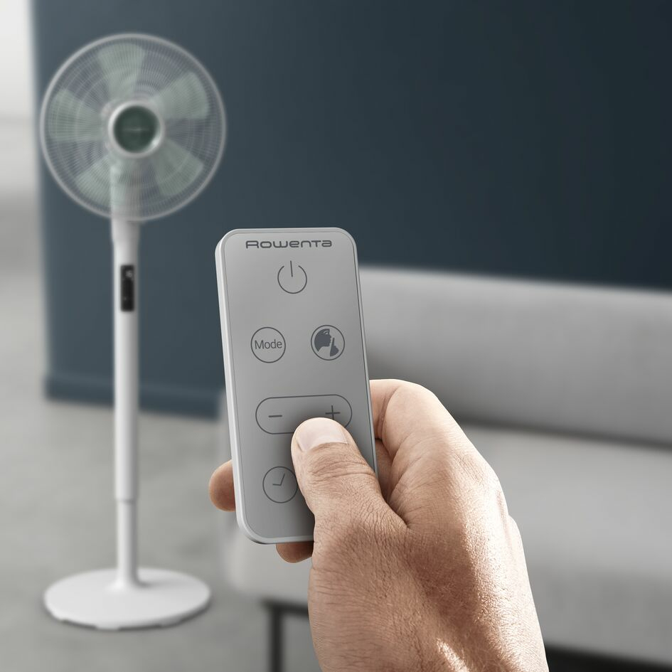 Für eine angenehme und geräuscharme Kühlung – der Rowenta VU5890 Turbo Silence Extreme+ Standventilator 34 WEin sehr angenehmes Lüftchen erzeugt der Rowenta VU5890 Turbo Silence Extreme+ Standventilator 34 W bei schüler Witterung und zu warmen Räumen. Durch die dauerhafte Luftzirkulation, die das Modell erzeugt, können Sie befreit aufatmen.Passen Sie die Leistung an Ihre Bedürfnisse an!Dank der 16 Leistungstufen lässt sich die für Sie passende Luftzirkulation einstellen. Mit einem Flügeldurchmesser von 40,0 cm kann das Modell eine sehr hohe Umwalzleistung von 4110 m³/h erzielen. Die Lautstärke des Modells liegt bei 58 dB (A).Mit TimerfunktionAuf diese besondere Eigenschaft können Sie sich freuen: Oszillation (120°). Mit der Fernbedienung können Sie den Rowenta Standventilator VU5890 Turbo Silence Extreme+ bequem auch mit etwas Abstand steuern. Ausgestattet mit einem Timer, können Sie bei diesem Gerät die Betriebsdauer im Voraus einstellen und somit Energie sparen, indem es automatisch abschaltet.Schwenkbar!Um den Luftstrom gleichmäßig durch den Raum strömen zu lassen, ist das Modell schwenkbar. Die Neigungsverstellung ermöglicht es zusammen mit der Höhenverstellung, den Luftstrom gezielt dorthin zu lenken, wo er benötigt wird.Robust und pflegeleichtMit Maßen von 22,5 x 46,6 x 67,0 cm fügt sich der Rowenta Standventilator VU5890 Turbo Silence Extreme+ überall harmonisch ein. Das Gewicht liegt bei 7,8 kg. Das Gerät wurde aus Kunststoff hergestellt. Dadurch ist es sehr robust und leicht zu reinigen, was für eine einfache Handhabung sorgt.Der beste Partner, wenn es um eine kühle Brise gehtBewahren Sie in heißen Zeiten einen kühlen Kopf und bestellen Sie den Rowenta VU5890 Turbo Silence Extreme+ Standventilator 34 W bei uns im Shop!