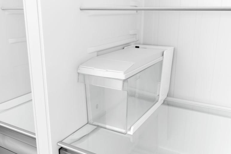 Der praktische in der Tür integrierte Eis- und Wasserspender kann genug Eis für die ganze Familie produzieren. Ohne die Kühlschranktür zu öffnen, kann man aus Eiswürfeln, zerstoßenem Eis oder gekühltem Wasser wählen, was und wann immer man es will. Die einfachste Art, sich mit kalten Getränken zu versorgen.