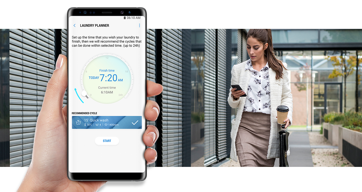 Das neue Simple Control-Bedienkonzept von Samsung denkt mit und lernt durch künstliche Intelligenz. So werden deine Programme z.B. anhand deiner Waschgewohnheiten sortiert oder automatisch der passende Trockengang für deine frischgewaschene Wäsche voreingestellt[16]. Die SmartThings App[17] berät, plant und unterstützt dich zusätzlich und macht deinen Waschalltag so angenehm und effizient wie möglich.
