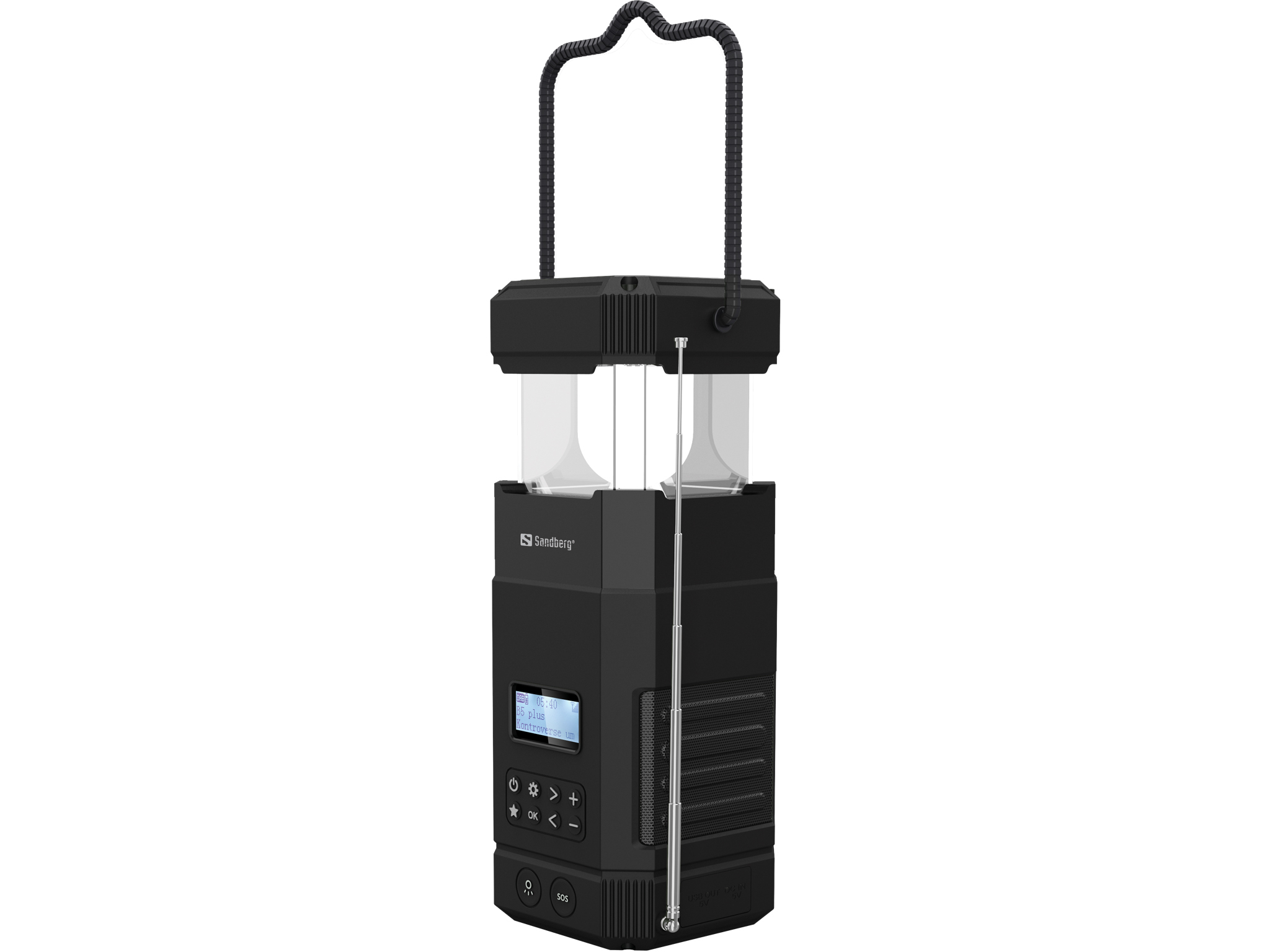 Die Sandberg Survivor Lantern All-in1 10000 ist der perfekte Begleiter beim Camping oder einer Wanderung in der Wildnis. Sie erhalten eine Vielzahl von nützlichen Funktionen in einem Gerät: Leistungsstarkes Licht mit einstellbarer Intensität, eine Powerbank zum Aufladen von Handys usw., einen Bluetooth-Lautsprecher sowie DAB- und FM-Radio. Und wenn der All-in1-Laterne unterwegs der Strom ausgeht, kann sie ganz einfach über die integrierte Solarzelle oder die Handkurbel wieder aufgeladen werden. Das robuste, IPx5-zertifizierte Gehäuse sorgt für absolute Sicherheit unter schwierigen Bedingungen.rnrn