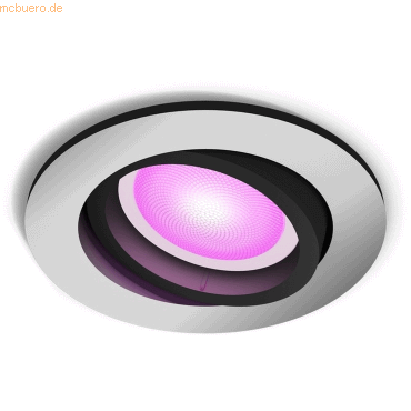 Dekorative Einbauspot-Beleuchtung für ein gemütliches Ambiente im Wohnbereich, für die direkte Beleuchtung.> Highlights- Dekorativer Einbauspot- Für direkte Beleuchtung- Steuerung über Bridge oder direkt über Bluetooth- Lichtfarbe frei einstellbar- Einfache Integration durch GU10 Sockel> Produkttyp- Leuchte- ear-Kategorie (ElektroG): relevant, Kategorie 5: Kleingeräte < 50 cm (alle Seiten), Kleingeräte B2C> Spezifikationen- arbeitet mit: Amazon Alexa, Apple HomeKit, Google Assistant, Samsung SmartThings, Matter- Kompatible Sprachassistenten: Amazon Alexa, Google Assistant, Siri- Sprachsteuerung möglich: mit Gateway- Schutzklasse: IP20 - Schutz gegen Fremdkörper größer 12,5 mm/nicht wassergeschützt, Klasse II - Schutzisolierung- Gehäusematerial: Kunststoff- Funkstandard: ZigBee, Bluetooth- Dimmbar- Energieeffizienzklasse: E- Fassung: GU10- Durchschnittliche Lebensdauer: 25000 Stunde(n)- Lichtfarbe: RGBW, Farbtemperaturwechsel- Lichtstrom max.: 400 lm- Farbtemperatur min.: 2000 K- Farbtemperatur max.: 6500 K- Gültigkeitsjahr der Energieeffizienzklasse: 2019- CRI/Ra-Wert: 80- Anzahl Leuchtmittel: 1- Art des Leuchtmittels: Austauschbares Leuchtmittel- Lichtstrom bei 2700 K: 350 lm> Versand- WEEE: 43841997> Stromversorgung- Netz- Eingangsspannung: 220 V240 V- Leistungsaufnahme Betrieb: 4.2 W> Grundeigenschaften- Farbe: Silber- Herstellerfarbbezeichnung: Aluminium- Höhe: 100 mm- Länge/Tiefe: 90 mm- Breite: 90 mm- Gewicht: 200 g> Lieferumfang- Philips Hue White & Color Ambiance Centura Einbauspot rund- GU10 LED-Lampe