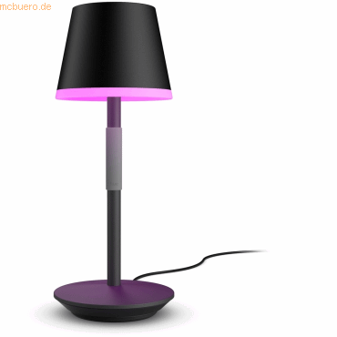Mit dieser tragbaren smarten Leuchte in bringst Du smartes Licht an jeden gewünschten Ort. Diese für die Nutzung im Außenbereich geeignete Leuchte mit Silikongriff lässt sich leicht überall dorthin mitnehmen, wo Du dringend Licht benötigst, zum Beispiel beim Lesen in der Wohnung oder beim Abendessen im Freien.> Highlights- Tragbare intelligente Tischleuchte für die Nutzung im Innen- und Außenbereich- 16 Millionen verschiedene Farben und 50.000 verschiedene Weißtöne, hochwertiges LED-Licht- Akkuladezeit: 3 bis 4 Stunden- Akkudauer: 6 bis 48 Stunden (abhängig von der genutzten Einstellungen)- Integrierbar in das Hue-System für App-Steuerung, Steuerung über Bluetooth und Bridge- Inklusive Ladestation> Produkttyp- Leuchte- ear-Kategorie (ElektroG): relevant, Kategorie 5: Kleingeräte < 50 cm (alle Seiten), Kleingeräte B2C> Spezifikationen- arbeitet mit: Amazon Alexa, Apple HomeKit, Google Assistant, IFTTT- Kompatible Sprachassistenten: Amazon Alexa, Google Assistant, Siri- Sprachsteuerung möglich: mit Gateway- Schutzklasse: IP54 - Staub-/Spritzwassergeschützt, IP20 - Schutz gegen Fremdkörper größer 12,5 mm/nicht wassergeschützt- Gehäusematerial: Aluminium- Funkstandard: ZigBee, Bluetooth- Dimmbar- Energieeffizienzklasse: G- Durchschnittliche Lebensdauer: 20000 Stunde(n)- Lichtfarbe: RGBW- Lichtstrom max.: 530 lm- Farbtemperatur min.: 2000 K- Farbtemperatur max.: 6500 K- CRI/Ra-Wert: 80- Anzahl Leuchtmittel: 1- Art des Leuchtmittels: Fest verbautes Leuchtmittel- Lichtstrom bei 2700 K: 370 lm> Versand- WEEE: 43841997- Akkugewicht: 94 g> Stromversorgung- Akkukapazität: 2300 mAh- Akku-/Batterie-Technologie: LiNiMnCoO2 - Lithium-Nickel-Mangan-Cobalt-Oxide- Akkutyp: Lithium Batterie 18650- Anzahl Akkus/Batterien: 2- Akkuspannung: 3.7 V- Akku verbaut: in Gerät eingebaut- Netz, Akku- Eingangsspannung: 220 V240 V- Leistungsaufnahme Betrieb: 6.2 W- Energie: 8.51 Wh> Grundeigenschaften- Farbe: Schwarz, Dunkelgrau- Höhe: 35 cm- Länge/Tiefe: 14.2 cm- Breite: 14.2 cm- Gewicht: 1277 g> Lieferumfang- Philips Hue Go- Ladestation- Netzgerät- EU- und UK-Stecker