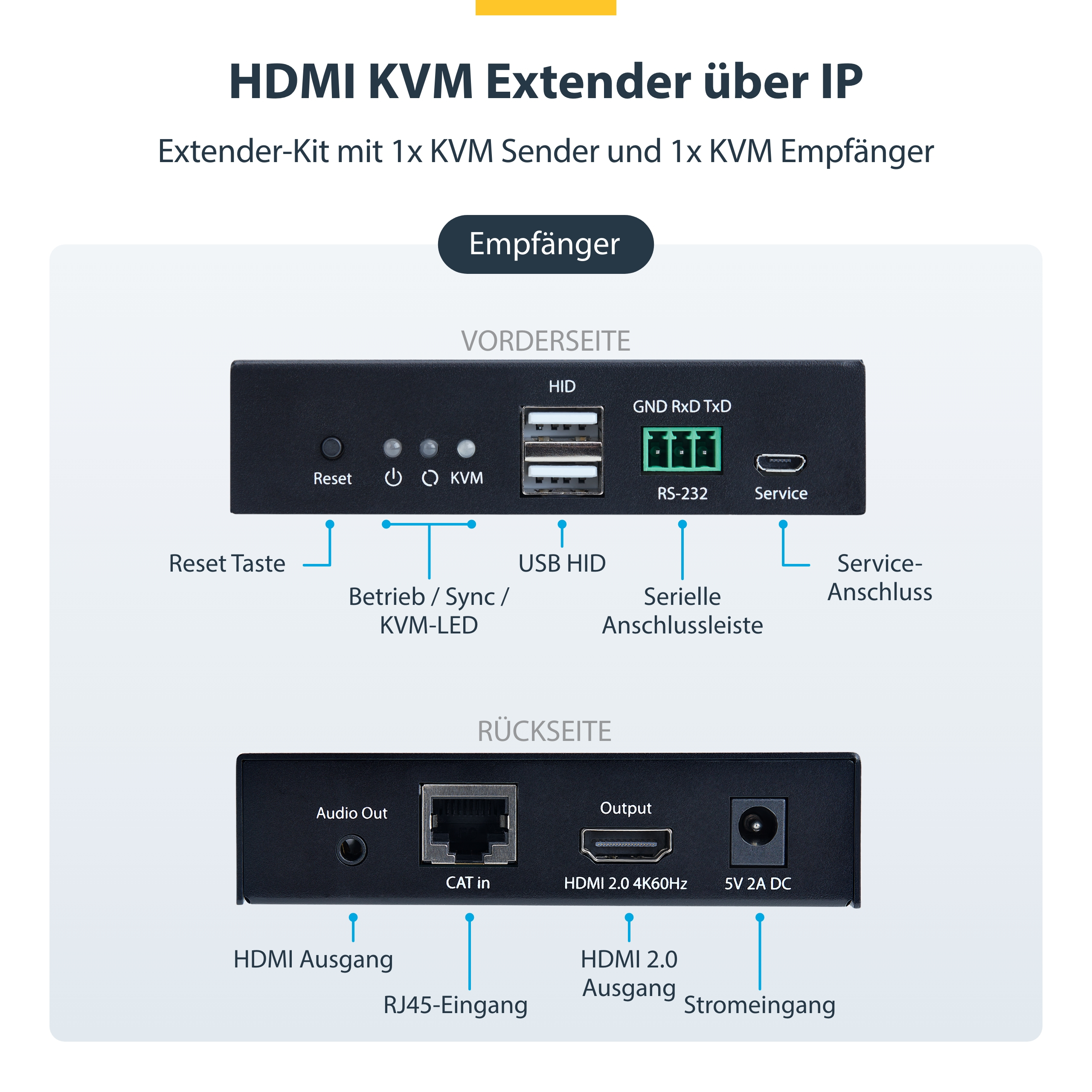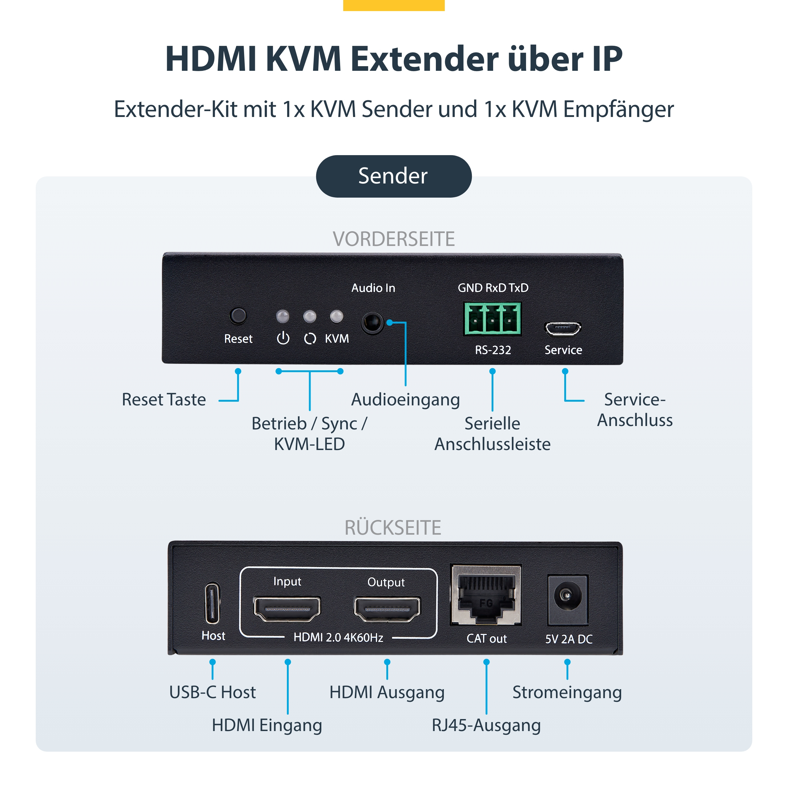 StarTech.com HDMI KVM Extender over IP-Netzwerk 4K 60Hz Treiberlos Sender/Empfänger