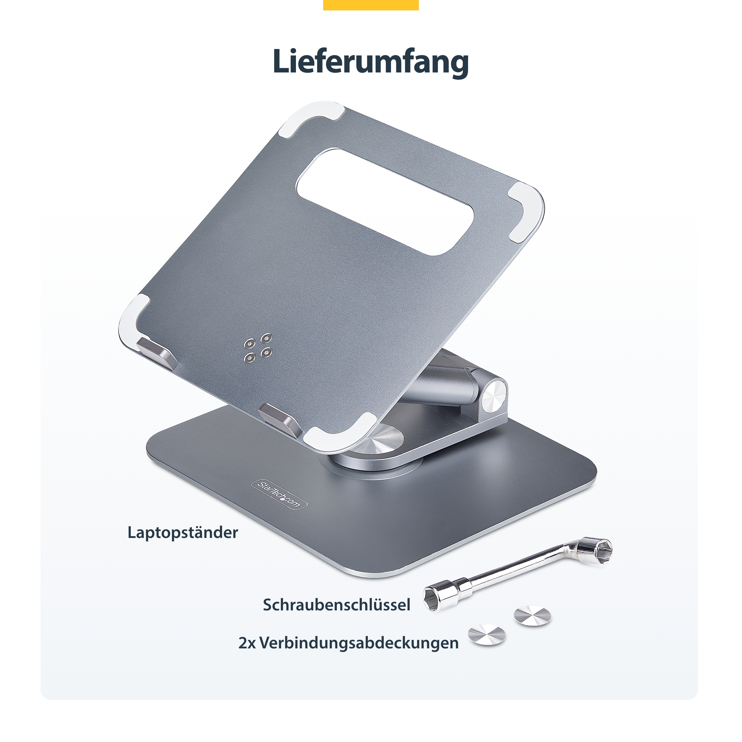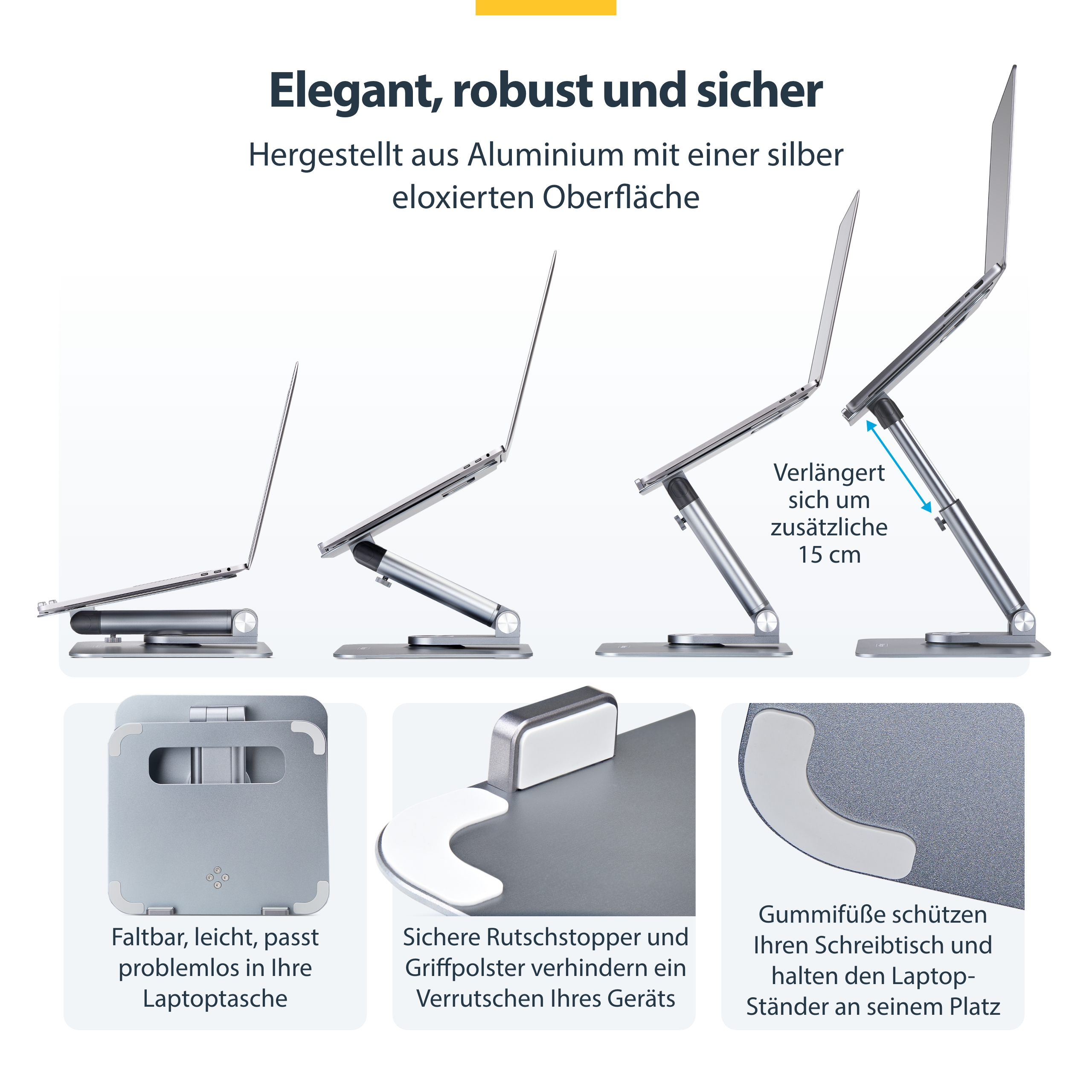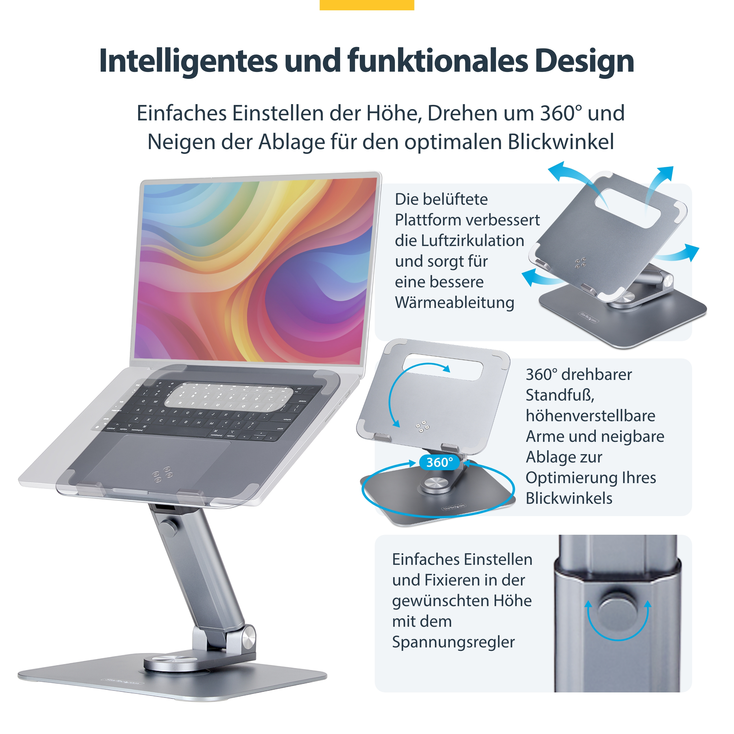 ERGONOMISCHE ERHÖHUNG: Bringt den Laptop auf Augenhöhe für bequeme Körperhaltung und täglichen Komfort; rotierende Teleskopsäule bietet flexible Positionierung mit Verlängerung bis zu 12,5cm; Einstellbare Spannkraft für Notebookgewichte bis zu 5kg