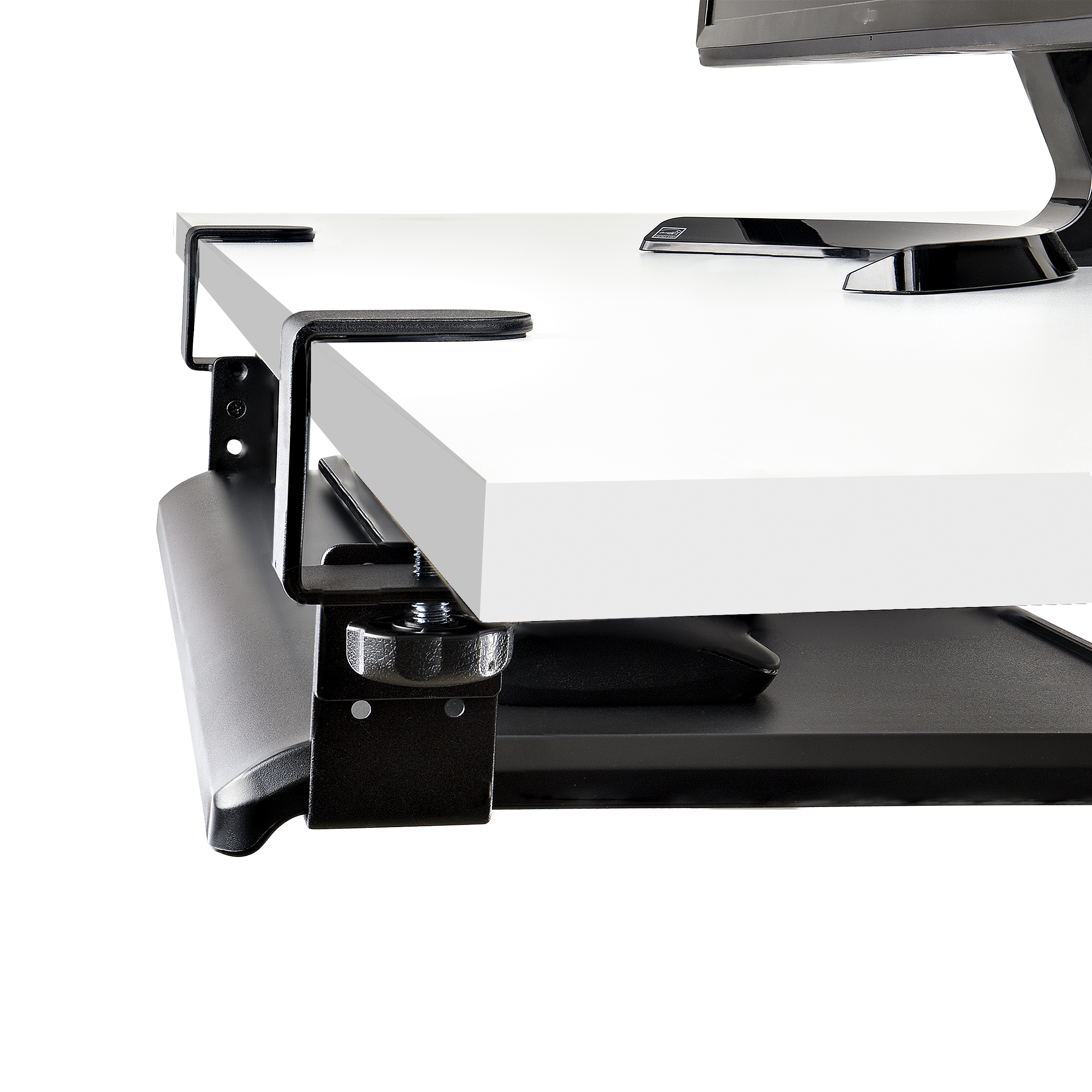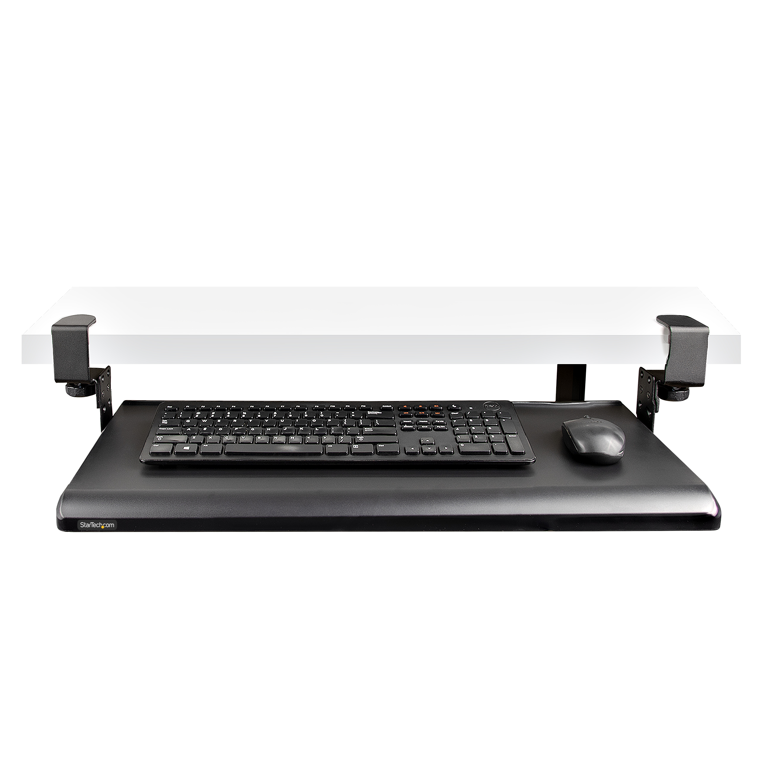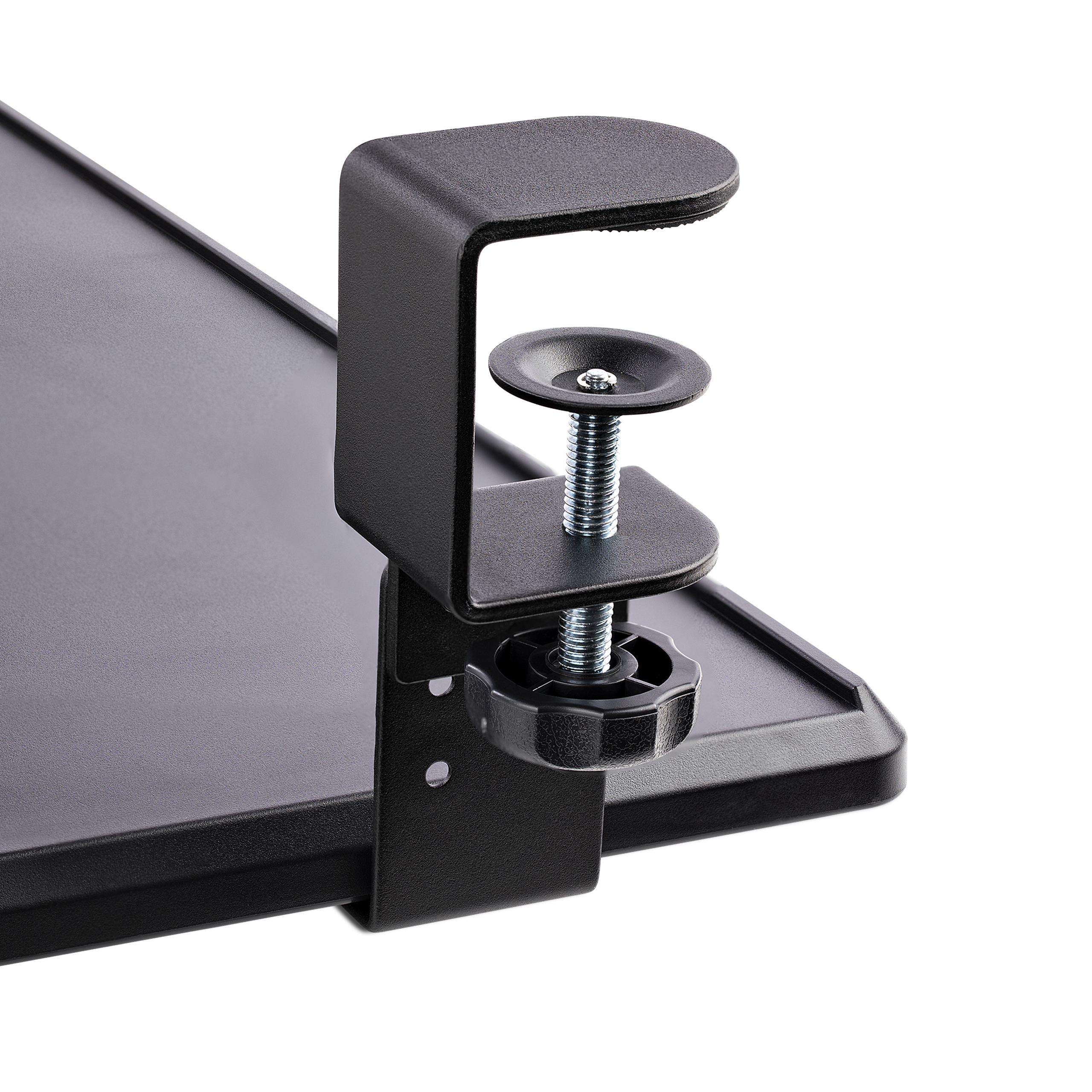 Untertisch Ausziehbare Tastaturablage, Höhenverstellbare Tastaturhalterung mit Tischklemmen, bis zu 12kg, Computertisch/Schreibtisch Tastaturauszug/Tastatureinschub (KEYBOARD-TRAY-CLAMP1).rnrn rnTastaturablagefach - 3 Höhenoptionen - bis zu 12 kgDieses Untertisch Tastaturablagefach fügt Bequemlichkeit und Komfort zu Ihrer Einrichtung hinzu, indem es wertvollen Platz auf dem Schreibtisch zurückgewinnt. Die Tastaturablage ist ergonomisch geformt und für Bequemlichkeit ausgelegt.Geräumiges und robustes DesignDie große Fläche des Tastaturablagefachs mit den Maßen 700 x 310 mm bietet ausreichend Platz für eine Tastatur in voller Größe, eine Maus und eine Handgelenkauflage. Das Ablagefach ist zudem mit 12 kg belastbar, bietet eine stabile Schreibunterlage und kann bis zu 216 mm über die Tischkante hinausragen.Einfache Bedienung und InstallationDas Tastaturablagefach ist mit Schienen versehen, die es ermöglichen, es mühelos unter den Schreibtisch zu schieben und herauszuziehen. Nach der