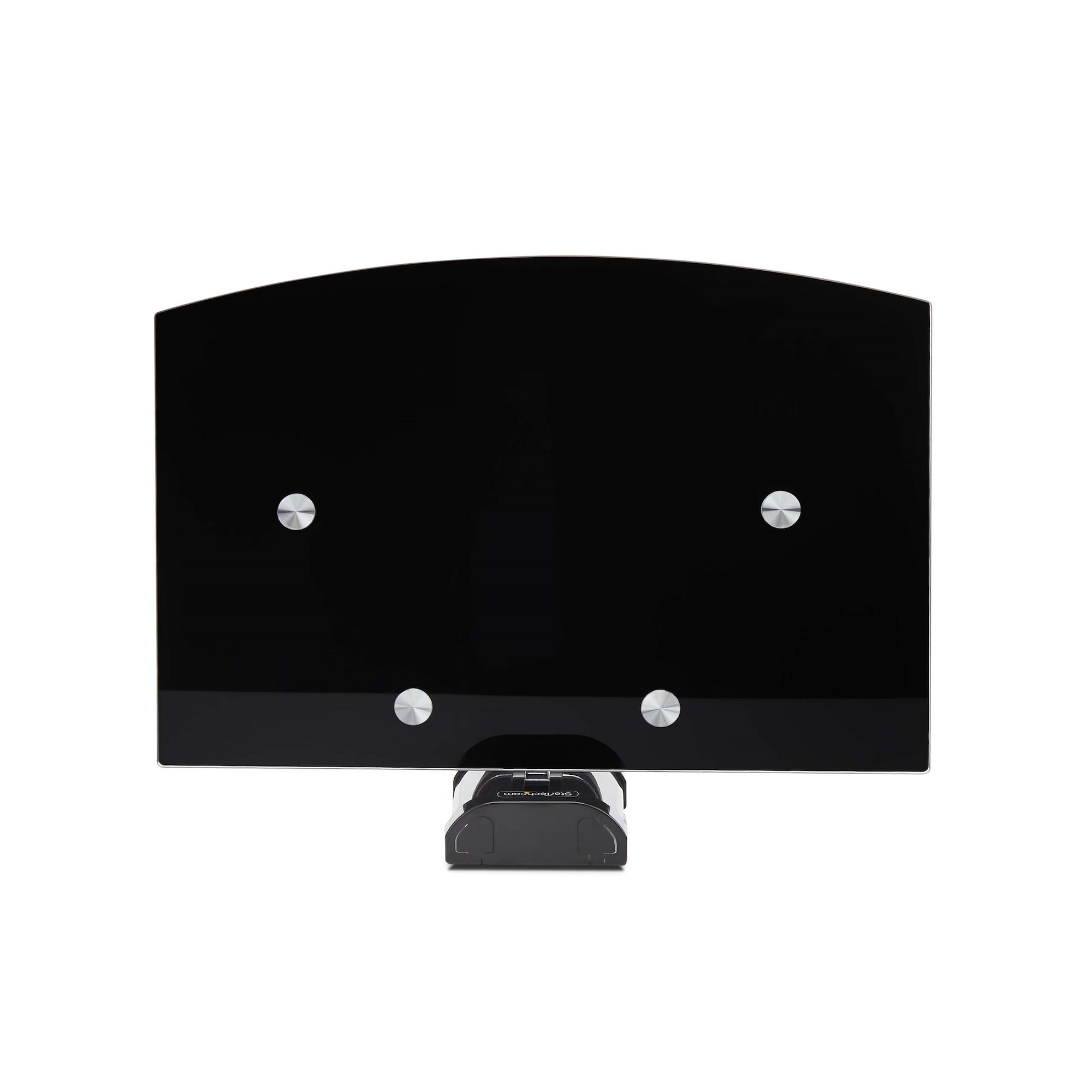 SCHWEBENDES WANDMONTAGE AV-REGAL: 5mm dicke Ablage aus schwarzem Hartglas (36x25cm), ideal für die Organisation von AV-Komponenten (z. B. Videokonferenzgeräte oder AV-Receiver) unter oder über einem Fernseher in einem Sitzungssaal oder Büro
