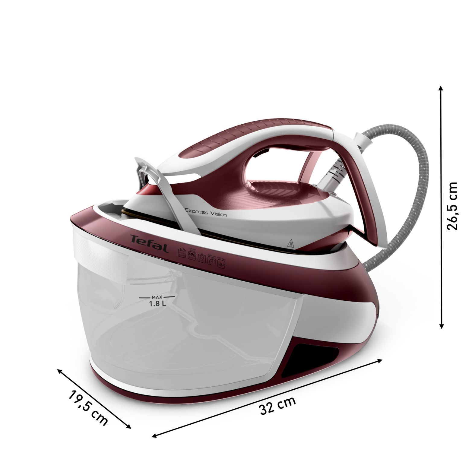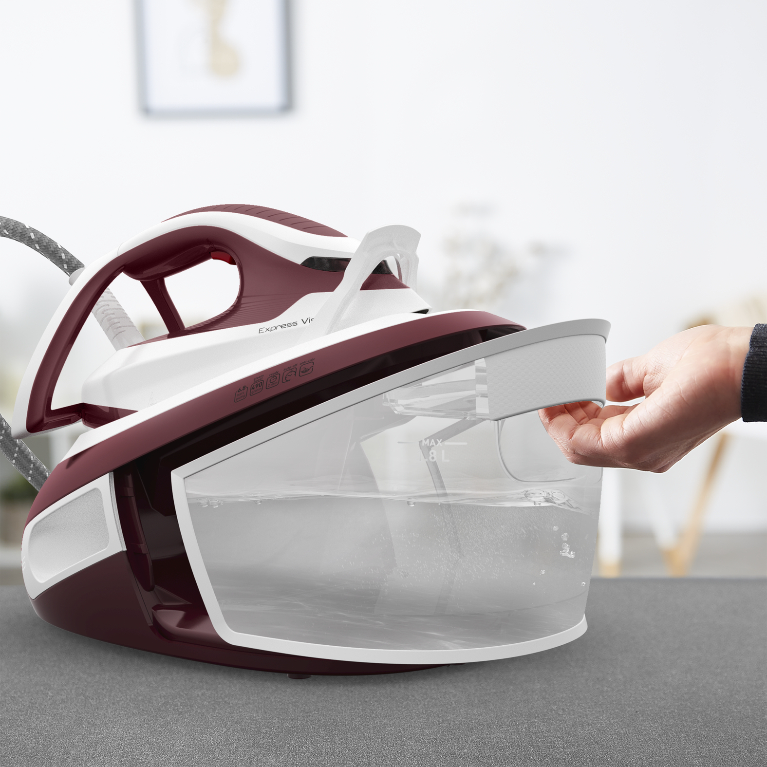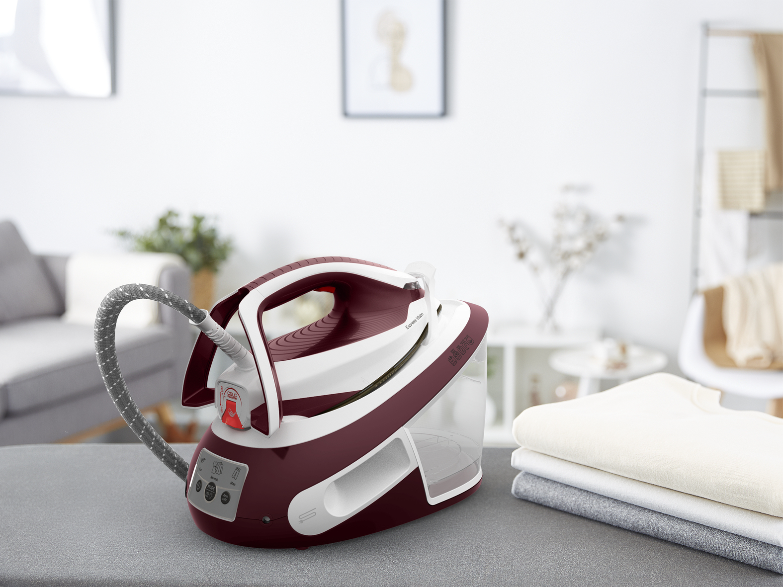 Die Tefal Express Vision Dampfbügelstation steht für das perfekte Gleichgewicht von hochpräzisen Bügelergebnissen und praktischem, benutzerfreundlichem Design. Superkraftvoller Dampf zusammen mit dem bahnbrechenden Easy LED Vision-System, das den Weg zum einfachen Bügeln zeigt — mit einer LED-Leuchte an der Spitze des Bügeleisens für eine vollkommene Sicht überall — während einstellungsfreie Funktionen, ein abnehmbarer Kalk-Kollektor und ein Wassertank mit hohem Fassungsvermögen die Wäschepflege mühelos macht, jeden Tag.