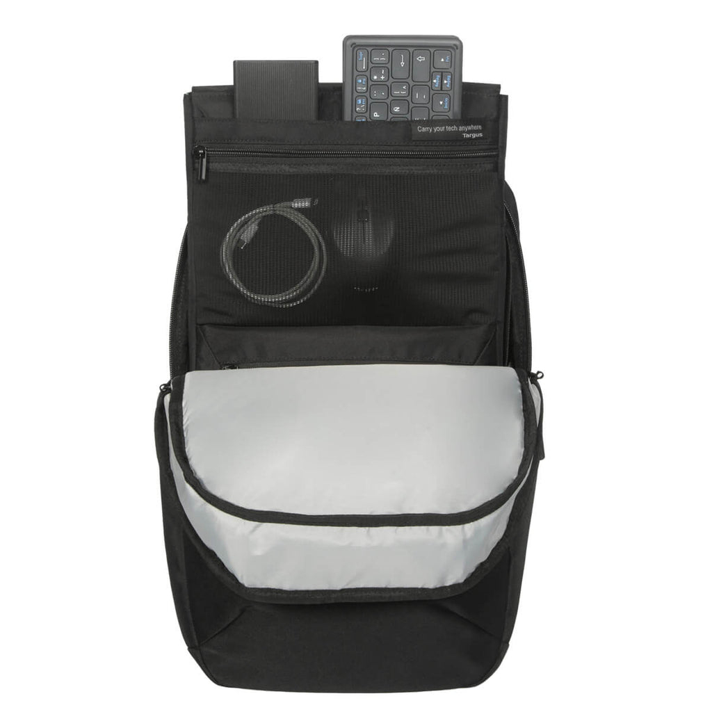 Trage deine Technik überall hin mit dem 1516- Work+ EcoSmart Rucksack ein modularer 2-in-1-Begleiter, der sich nahtlos an all deine Bedürfnisse anpasst.Verstaue, organisiere und transportiere deine Geräte und Zubehörteile mühelos im Rucksack oder separat dank des abnehmbaren Technik-Organizers. Mit einem sicheren Magnetverschluss sind Laptop und Tablet zuverlässig geschützt und gleichzeitig schnell griffbereit. Maximal anpassungsfähig verfügt er außerdem über den Multi-Flex-Gurt: ein verstellbarer Sicherheits- und Komfortgurt, der sich je nach Bedarf als Brustgurt, Trolleygurt, Sicherheits- oder Universalgurt nutzen lässt. Mit flexiblem Raumkonzept lässt sich das Fassungsvermögen der vorderen und hinteren Fächer variabel nutzen. Zusätzlich bietet er abschließbare Fächer und eine versteckte Seitentasche für wichtige Utensilien. Dazu kommt eine erweiterbare Seitentasche ideal für deine Wasserflasche oder dein Stativ sowie ein weich gefüttertes Topfach, das deinem Alltag einen Hauch von Luxus verleiht.> Highlights- EcoSmart Rucksack- Abnehmbarer Technik-Organizer mit Magnetverschluss für 15-16 Zoll Laptop und 13 Zoll Tablet- 23 Liter Fassungsvermögen für die tägliche Ausrüstung- Multi-Flex Gurt lässt sich als Brust-, Trolley-, Sicherheits- oder Universalgurt verwenden- Versteckte Seitentasche- Flexibles Raumkonzept> Produkttyp- Tasche- ear-Kategorie (ElektroG): irrelevant> Versand- WEEE: 40818171> Tasche- Taschenart: Rucksack- Passform: universell- Passend für Geräte bis Displaydiagonale: 16 -40.6 cm- Tragevariante: Trageschlaufe, Schultergurt, Trolleygurt- Verschlussart: Reißverschluss- kompatibel zu: 16 Zoll Laptops und darunter> Grundeigenschaften- Farbe: Schwarz, Grau- Höhe: 45.5 cm- Länge/Tiefe: 13 cm- Breite: 30 cm- Gewicht: 0.67 kg> Lieferumfang- Targus Work+ 15-16- Backpack- Hinweistext Lieferumfang: Das abgebildete Zubehör und die Endgeräte dienen der Veranschaulichung und sind nicht im Lieferumfang enthalten.