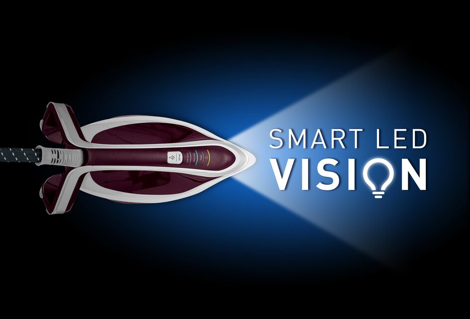 Eine LED an der Spitze des Bügeleisens leuchtet automatisch, wenn sich das Bügeleisen in horizontaler Position befindet, und zeigt den Weg zu perfekten Bügelergebnissen, überall — in welchem Raum auch immer und unabhängig von den Lichtverhältnissen
