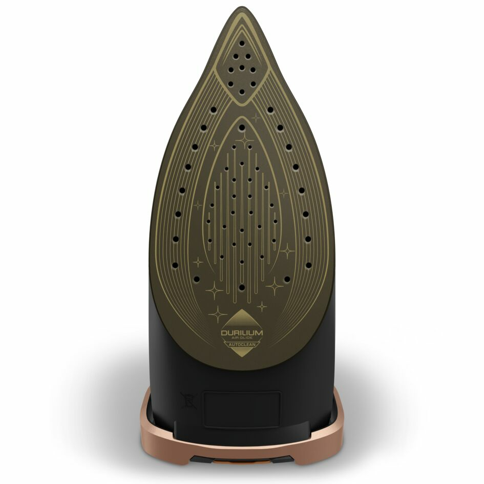 Beschreibung rnErleben Sie Bügeln auf höchstem Niveau mit dem Tefal Ultimate Power Pro FV9E50. Dieses leistungsstarke Trocken- und Dampfbügeleisen kombiniert beeindruckende 3200 Watt Leistung mit modernster Technologie für makellose Ergebnisse. Die Durilium AirGlide Autoclean Bügelsohle garantiert nicht nur beste Gleiteigenschaften auf allen Stoffarten, sondern bleibt dank der Selbstreinigungsfunktion dauerhaft sauber. Mit einem kraftvollen Dampfstoß von bis zu 300 g/min werden selbst hartnäckigste Falten mühelos geglättet, während die präzise Dampfspitze auch schwer erreichbare Stellen wie Knopfleisten perfekt erreicht.rnrn Produktfeatures rn rn Maximale Leistung von 3200 W für schnelles Aufheizen und effizientes Bügeln. rn Durilium AirGlide Autoclean Bügelsohle für optimale Gleitfähigkeit und Langlebigkeit. rn Extra starker Dampfstoß von 300 g/min gegen tiefste Falten. rn Konstante Dampfleistung von 85 g/min für kontinuierlich glatte Ergebnisse. rn Herausnehmbarer Anti-Kalk-Kollektor