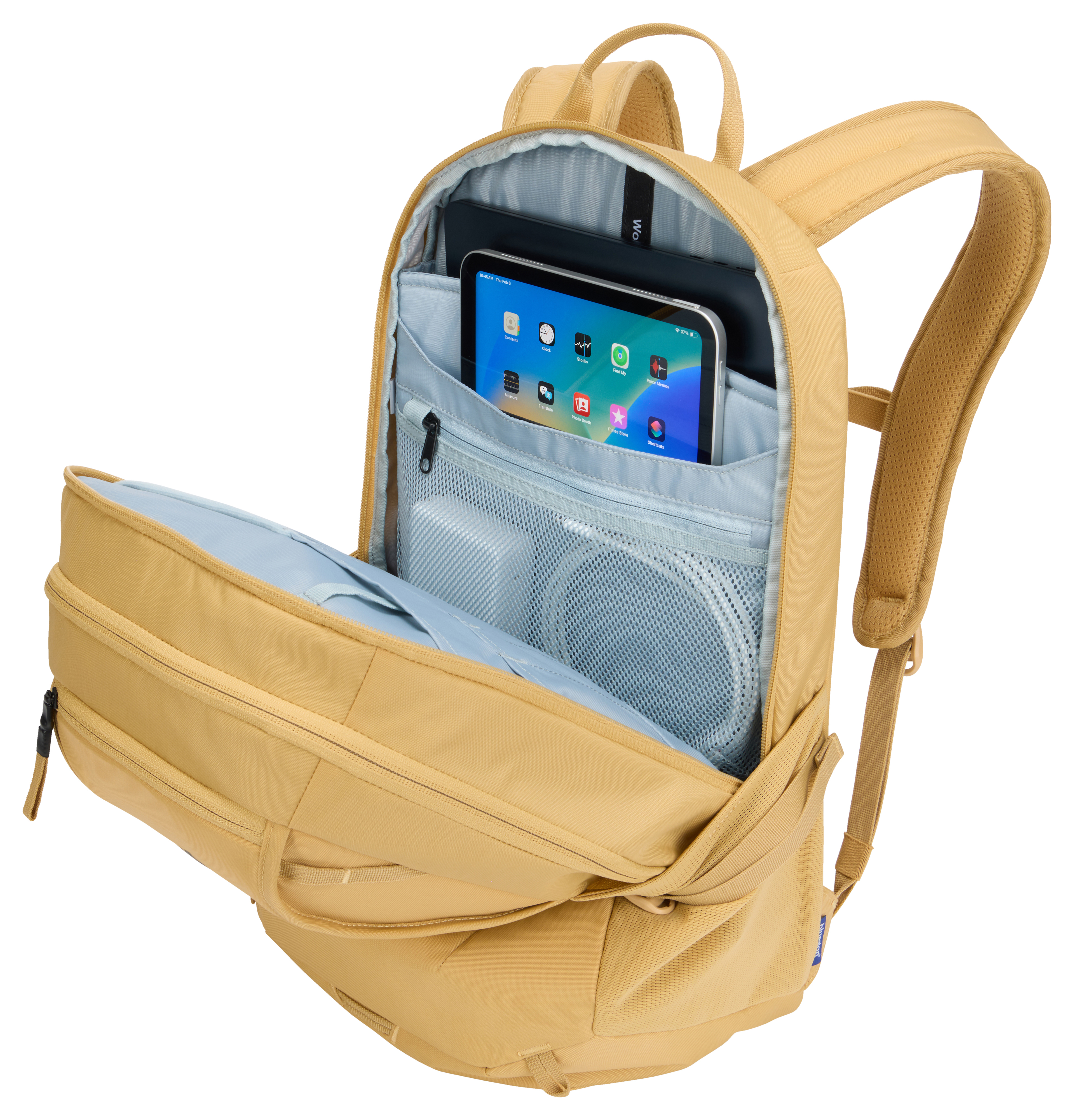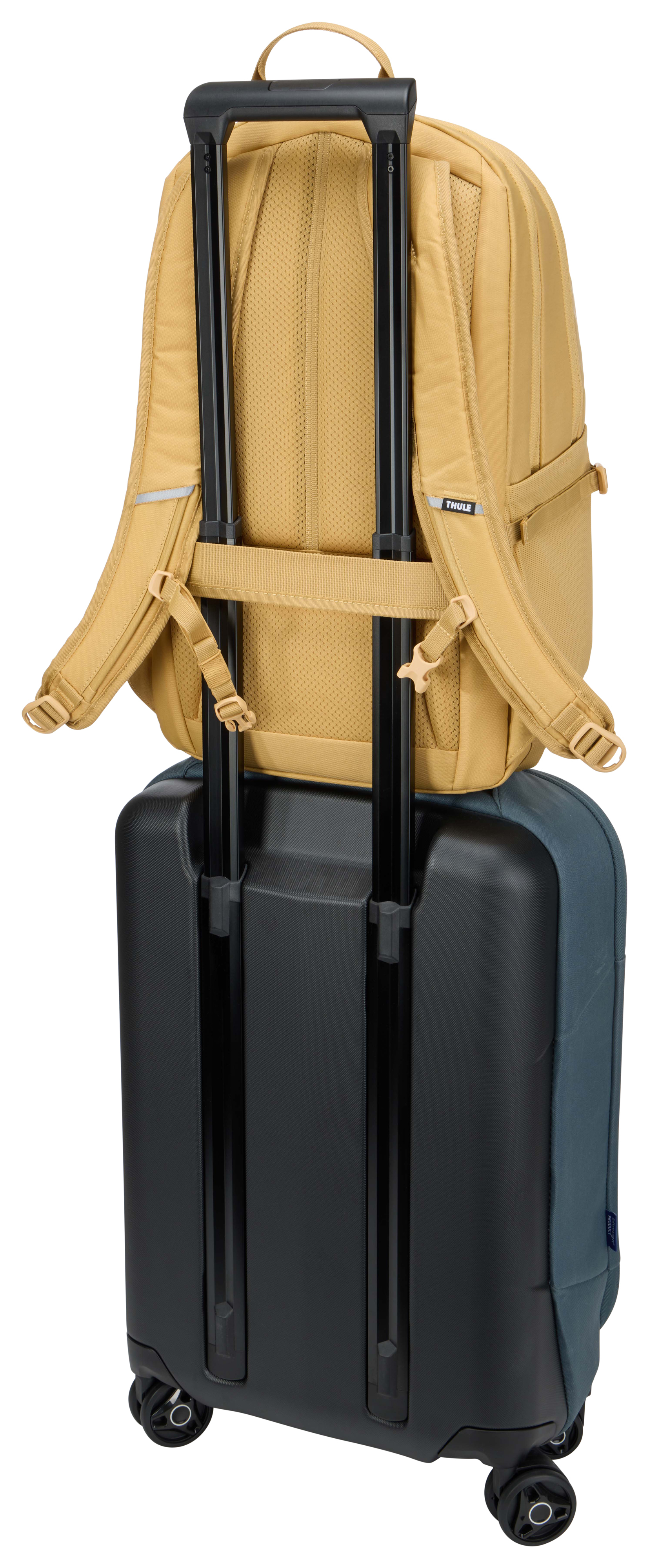 Ein vielseitiger, Outdoor-inspirierter Rucksack, der mehrere Aufbewahrungslösungen bietet, damit Sie auch unterwegs gut organisiert sind.- Abgesetzte, dedizierte Fächer schützen Laptops bis 15,6-Zoll und Tablets bis zu 10,5-Zoll- Weich gefütterte Tasche bietet schnellen Zugriff und schützt Telefon, Sonnenbrille oder andere Wertgegenstände- Die Organisationstaschen ermöglicht es Ihnen, kleine Accessoires, Stifte und Schlüssel leicht zugänglich aufzubewahren- Das sekundäre Hauptfach bietet Platz für Wechselkleidung, Accessoires oder andere persönliche Gegenstände. Es verfügt zudem über eine transparente TPU-Tasche mit Reißverschluss, die wasserfest ist, um andere Inhalte zu schützen- Seitliche Netztaschen an der Außenseite bieten Platz für eine Wasserflasche, ein Netzteil oder einen Regenschirm- Verzurrpunkte an der Vorderseite ermöglichen das einfache Anbringen zusätzlicher Ausrüstung- Mit der Trolleybefestigung können Sie den Rucksack am Trolley aufsetzen, um einfacher zu reisen- Brustgurt, gepolstertes Rückenteil mit Belüftungskanal und seitliche Kompressionsriemen zum Ausgleich der Last, was den Tragekomfort erhöht- Hergestellt aus bluesign -zertifiziertem 400D-Nylon mit YKK-Reißverschlüssen