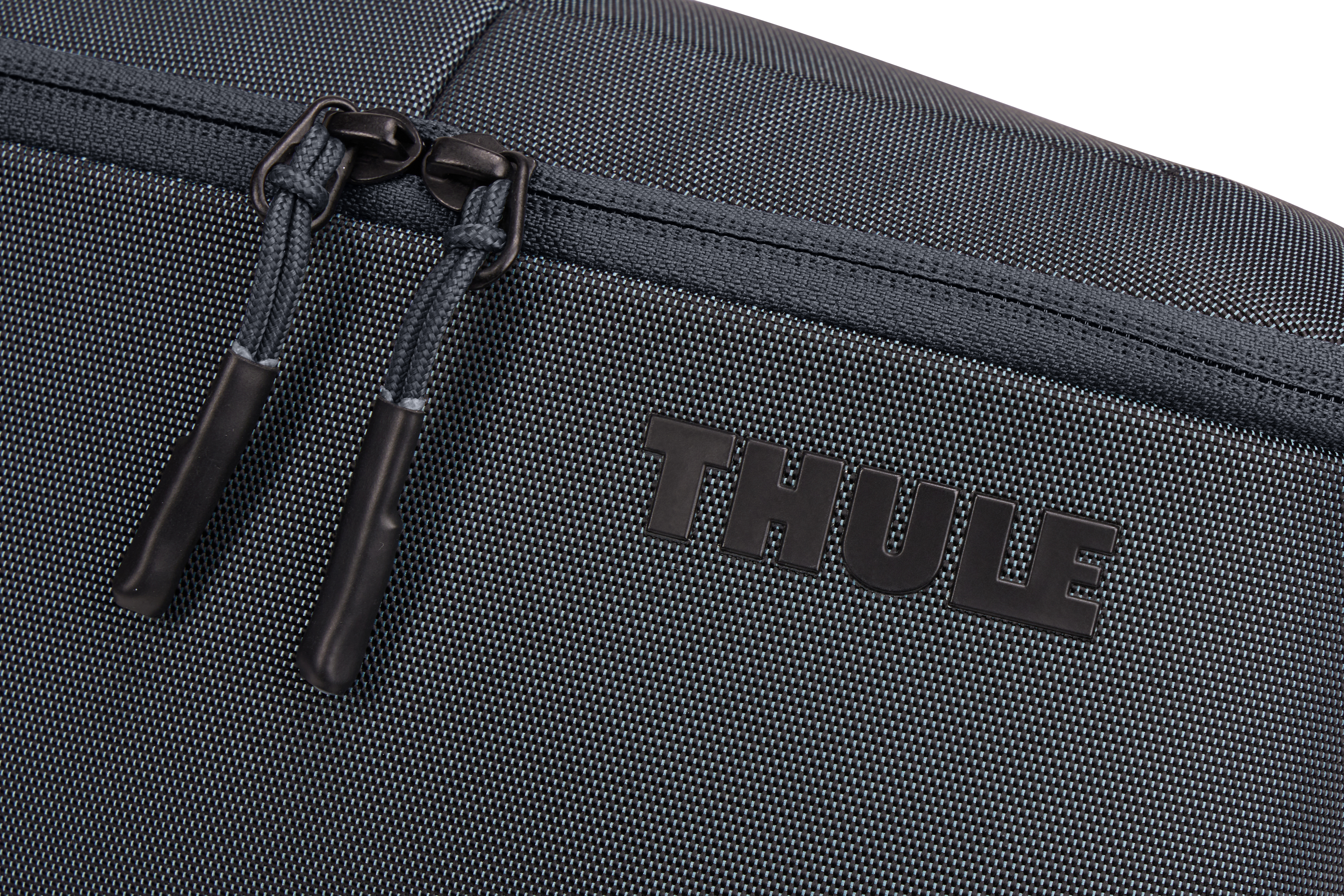Ein funktionaler Kulturbeutel aus der Subterra 2-Kollektion von Thule, ideal für die praktische Organisation von Pflege- und Hygieneartikeln auf Reisen. * Zwei-Wege-Reißverschluss – ermöglicht einfaches Öffnen und sicheren Verschluss * Geräumiges Hauptfach – bietet ausreichend Platz für alle wichtigen Utensilien * Mehrere Innenfächer – 3 Steckfächer und 1 Reißverschlussfach sorgen für Ordnung * Standfestes Design – erleichtert das Verstauen und den Zugriff unterwegs * Trageschlaufen an den Seiten – für komfortables Handling * Farbe – dunkles Slate-Grau für einen dezenten, modernen Look * Gewicht – leicht mit nur 0,25 Kilogramm Der Thule Subterra 2 Kulturbeutel kombiniert durchdachte Funktionalität mit robustem Material und ist ein praktischer Begleiter für unterwegs.