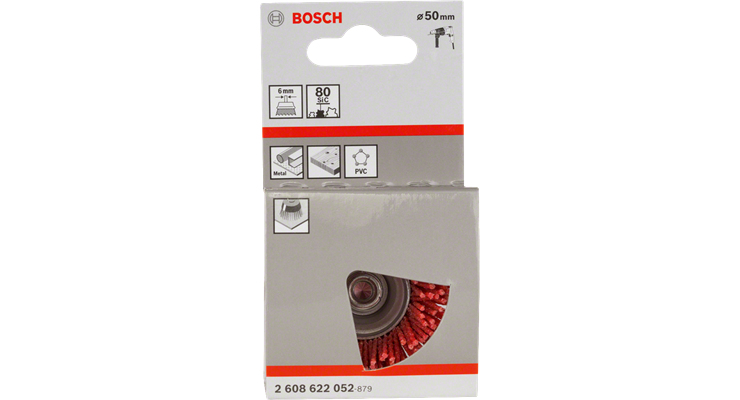 Topfbürste Nylon 50 mm Die Topfbürste liefert beschädigungsfrei ein feines Finish auf verschiedenen Materialen. Die sich perfekt an das Werkstück anpassenden Nylonborsten sind mit dem Aluminiumoxid K80 besetzt. Der Schleifbesatz gibt im Einsatz kontinuierlich Schleifkorn ab und sorgt so für gleichförmigen Materialabtrag. Diese Topfbürste für Reinigungsarbeiten wie Rostentfernung von kleineren Oberflächen, Kanten und Fugen geeignet. Sie ist auch zum Entfernen von Rost und Farbe sowie zum Glätten, Schruppen und Mattschleifen von Metall, PVC und Holz geeignet. Auch eignet sie sich zum Strukturieren von Holzoberflächen. Sie ist bestimmt für Bohrmaschinen mit Schaft 6 mm. Drahtbüsten werden in verschiedenen Stärken für verschiedene Schleifgrade angeboten. Stärkerer Draht arbeitet intensiver und schafft schnell Oberflächen, die allerdings grob sind. Dünnerer Draht sorgt für feinere und glattere Oberflächen. Durchmesser mm: 50, Drahtstärke mm: 1,00, Drehzahl, max. min-1: 4.500 - Breite: 8 cm, - Gewicht: 0,071 kg, - Höhe: 5 cm, - Länge: 10 cm