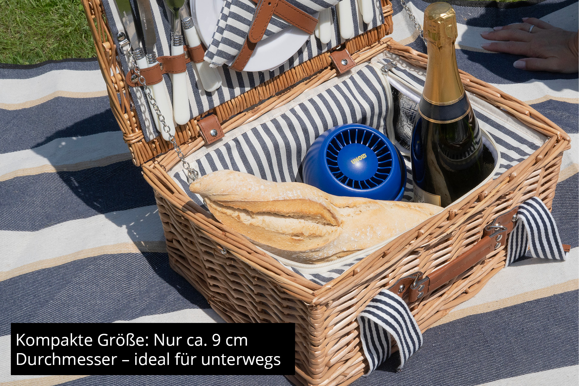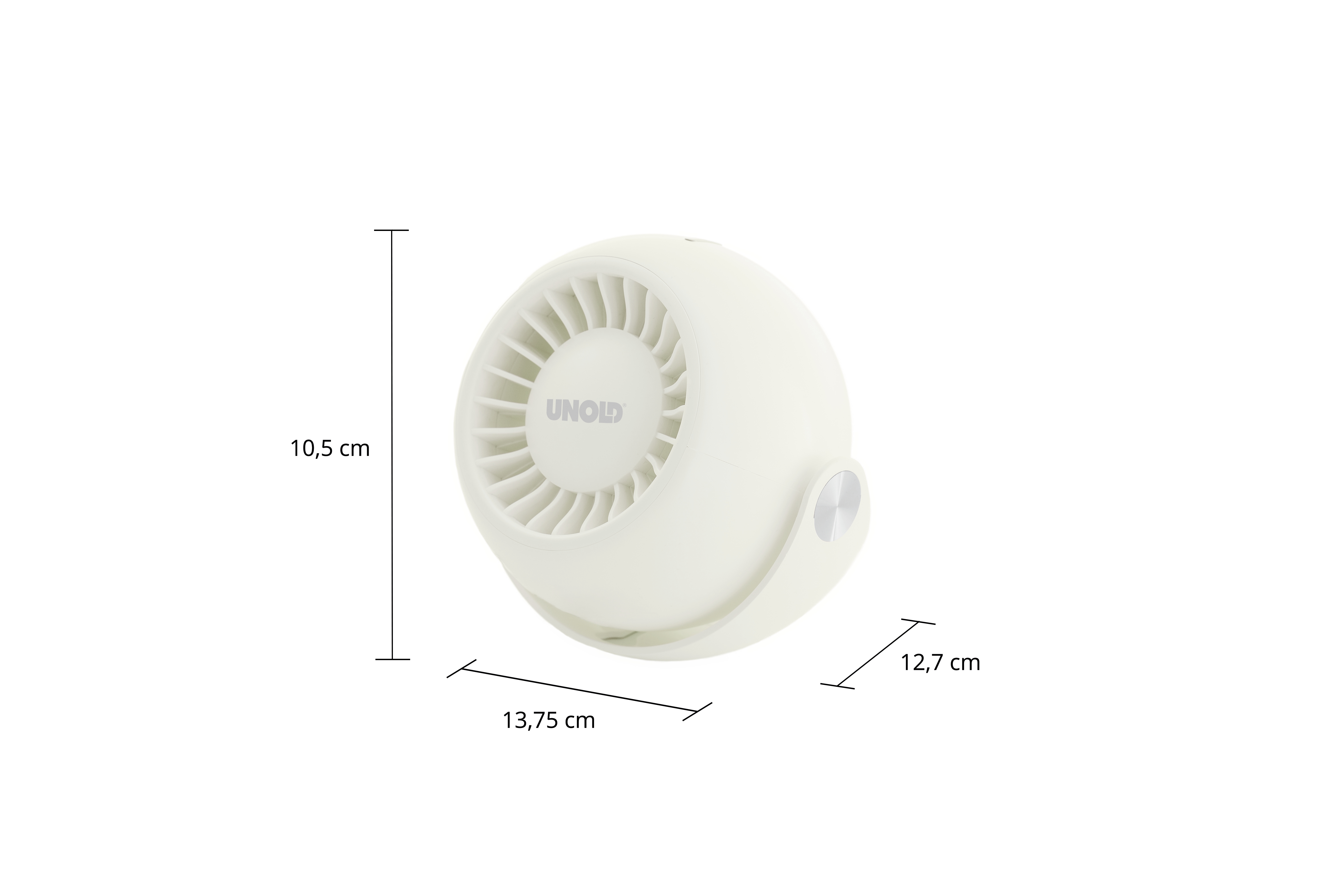 Mit drei Geschwindigkeitsstufen passt sich der Ventilator flexibel Ihrem Bedarf an und läuft je nach Stufe 1 bis 4 Stunden. In 3 Stunden ist er vollständig aufgeladen, der neigbare 180°-Kopf sorgt für optimale Luftzirkulation. Mit nur 9 cm Durchmesser ist er kompakt, mobil und auch für die Wandmontage geeignet. Eine LED-Kontrollleuchte zeigt den Ladestatus an. Features: Kompakter Akku-Ventilator mit 9 cm Durchmesser Drei Geschwindigkeitsstufen für individuellen Luftstrom 180° neigbarer Kopf für optimale Luftzirkulation Vollständige Aufladung in nur 3 Stunden Integrierte LED zur Ladestatusanzeige Technische Daten: Produktfarbe: Cremefarben Lüfterdurchmesser: 9 cm Batteriereichweite: 4 h Anzahl Geschwindigkeiten: 3 Typ: Handventilator LED-Batterieanzeige: Ja Verstellbarer Winkel: Ja Leistung: 6 W Akku-/Batterietechnologie: Lithium-Ion (Li-Ion) Akku-/Batteriespannung: 5 V Akku-/Batteriekapazität: 1200 mAh Ladezeit: 3 h Akkus/Batterien enthalten: Ja Breite: 137,5 mm Tiefe: 127 mm Höhe: 105 mm Lieferumfang: USB-Kabel Bedienungsanleitung