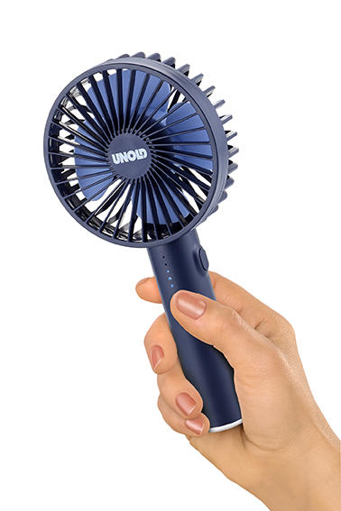 rnOb sanft oder mit viel Effet: Der kompakte HANDVENTILATOR Breezy II liefert auf Knopfdruck erfrischende Brisen in fünf Geschwindigkeitsstufen. Welche gewählt wurde, signalisiert die LED-Kontrollleuchte. Daheim und unterwegs - Breezy II funktioniert ganz ohne Kabel! Denn sein Akku sorgt, je nach Stufe, für eine Betriebsdauer von circa 2 bis 8 Stunden. Mit dem USB-Ladekabel (circa 95 Zentimeter lang) tankt er danach binnen circa 3 Stunden wieder neue Power für den nächsten Frische-Schub auf.rnOb im Homeoffice, im Büro oder auf der Zugfahrt, im Flughafen-Terminal oder im Schwimmbad: Immer dann, wenn sommerliche Temperaturen den Wohlfühl-Bereich übersteigen, ist Zeit für frischen Wind und einen Breezy II-Einsatz! Wahlweise gibt es den handlichen Wirbelwind in Anthrazit, Weiß, Blau, Grün oder Rosa. Und immer wird er begleitet von einem magnetischen Standfuß, in dem man ihn sicher platzieren kann, wenn er pausieren darf. Damit vor Meeting, Konferenz oder Treffen mit Freunden gecheckt werden