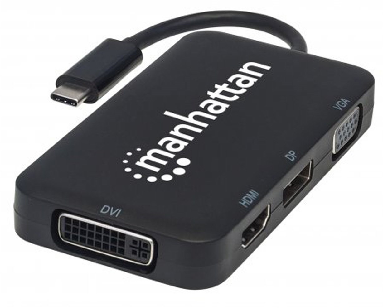4-in-1-Adapter konvertiert USB auf ein HDMI-, DisplayPort-, VGA- oder DVI-Audio/Video-Signal