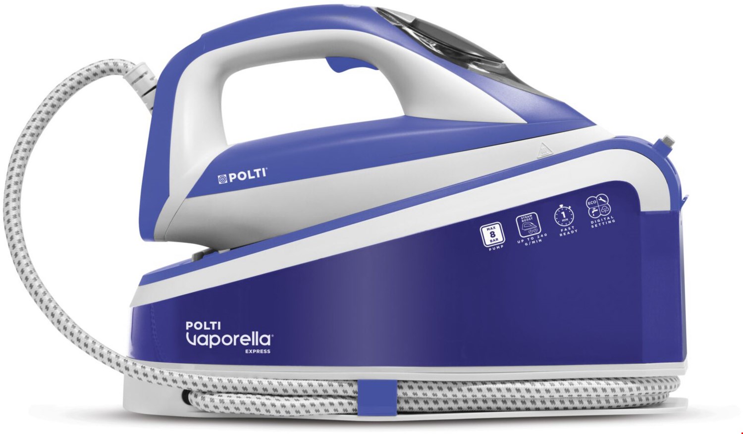 Eine Temperatur für alle Stoffe Mit der One Temperature-Technologie können alle Ihre Kleidungsstücke mit nur einer Temperatureinstellung gebügelt werden. Digitale Einstellungen und alles unter Kontrolle Wählen Sie Einstellungen und Maschinenfunktionen ganz einfach mit den digitalen Einstellungsbedienelementen aus. Ein einfacher Doppelklick und keine Falten mehr Der leistungsstarke 240 g/min Dampfstrahl wird durch einen einfachen Doppelklick auf die Bügeleisentaste aktiviert. In weniger als 1 Minute fertig Der 1,6 L Tank lässt sich jederzeit nachfüllen und dank der Aufwärmzeit von weniger als 1 Minute gehört das Warten dem Ende zu. Leichtes und einfach zu handhabendes Bügeleisen Bügeln Sie alle Ihre Kleidungsstücke perfekt dank der großen, kratzfesten und leichtgängigen Keramiksohle des Bügeleisens. Es kann überall gelagert werden Polti Vaporella Express ist sehr kompakt. Er kann überall verstaut werden. Einfache Wartung Durch regelmäßiges Reinigen mit dem Calc Cleaning-System bleibt die Leistung Ihrer Maschine dauerhaft erhalten.