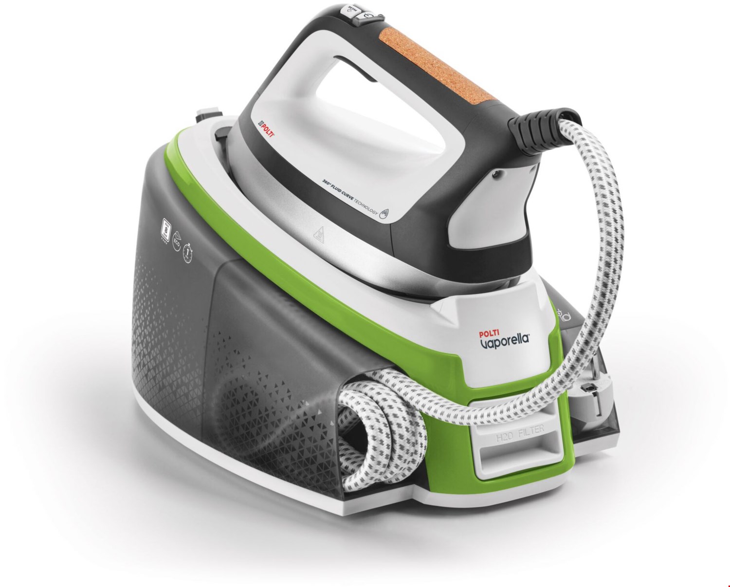 Innovative Instant-Steam-Technologie Es ist das schlagende Herz von Polti Vaporella Instant: Es erzeugt unter Druck stehenden Dampf und eliminiert jegliche Verzögerung. Ein Glätter, der keine Hindernisse kennt Die innovative abgerundete Form ermöglicht ein einfaches Bügeln in alle Richtungen und vermeidet störende Falten. Sparen Sie effizient Der Antikalkfilter verlängert die Lebensdauer des Bügeleisens und behält gleichzeitig seine Effizienz bei. Mit ECO und Standby sparen Sie Wasser und Energie. Für jeden Stoff den richtigen Dampf Mit den 4 Programmen können Sie jeden Stoff mit der richtigen Dampfintensität behandeln, um perfekte Kleidungsstücke zu erhalten. Volle Dampfkraft Dampfimpuls und intermittierender Dampf Dampfimpuls ermöglichen Ihnen Kraft, Leistung und Präzision in einem einzigen Produkt. Alles unter Kontrolle Über die digitale Anzeige am Griff des Bügeleisens können Sie die Programme einfach überprüfen und alles unter Kontrolle haben. Sofort fertig Sie können den 2-Liter-Tank jederzeit auffüllen und dank der Aufheizung in 1 Minute das Warten vergessen. Bequem zu verstauen Sobald das Bügeln beendet ist, lässt sich Polti Vaporella Instant leicht bewegen und lagern: Stellen Sie das Bügeleisen einfach wieder auf die Basis und verriegeln Sie es.