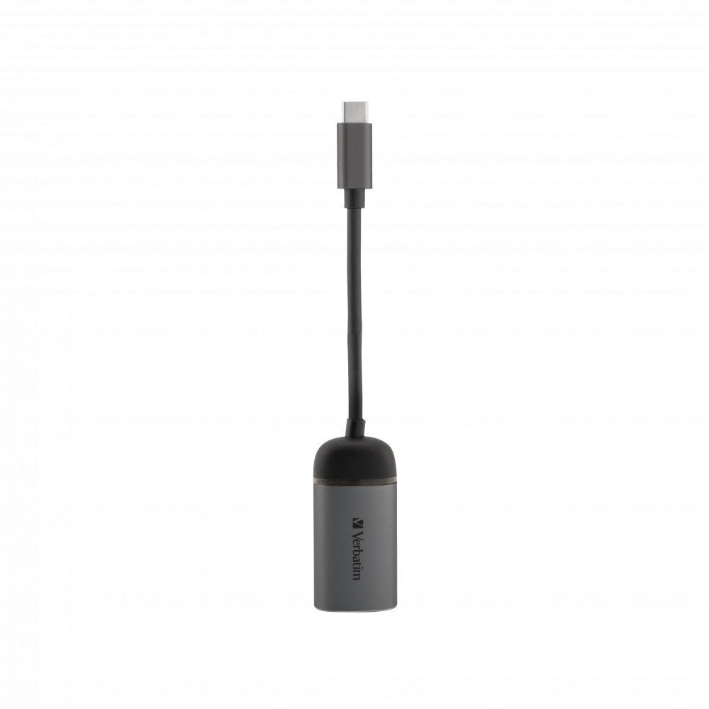 Der Verbatim USB-C auf Gigabit Ethernet Adapter ermöglicht Ihnen das Anschließen Ihrer USB-C?- oder Thunderbolt 3-fähigen (USB-C) Laptops und MacBooks mit einem Gigabit Ethernet-Kabel; Er ist der ideale Begleiter für die neuesten Slimline-Laptops und MacBooks, die nur über begrenzte Anschlussmöglichkeiten verfügen; Damit können Sie sich per Kabel mit einem Netzwerk verbinden, wenn die Funkverbindung unzuverlässig ist; Dieses äußerst handliche Gerät im gebürsteten Metalldesign eignet sich perfekt für BYOD-Anwendungen (Bring Your Own Device) im Büro und auf Reisen; Lässt sich mit jedem beliebigen USB-C-Gerät verbinden und unterstützt gleichzeitige Gigabit-Ethernet-Übertragung; Das schlanke und kompakte Design macht dieses Gerät sehr mobil und zum perfekten Begleiter für unterwegs; Schnittstelle: USB-C (USB 3.1 GEN 1), VGA, Produktgewicht: ca; 25 g,;