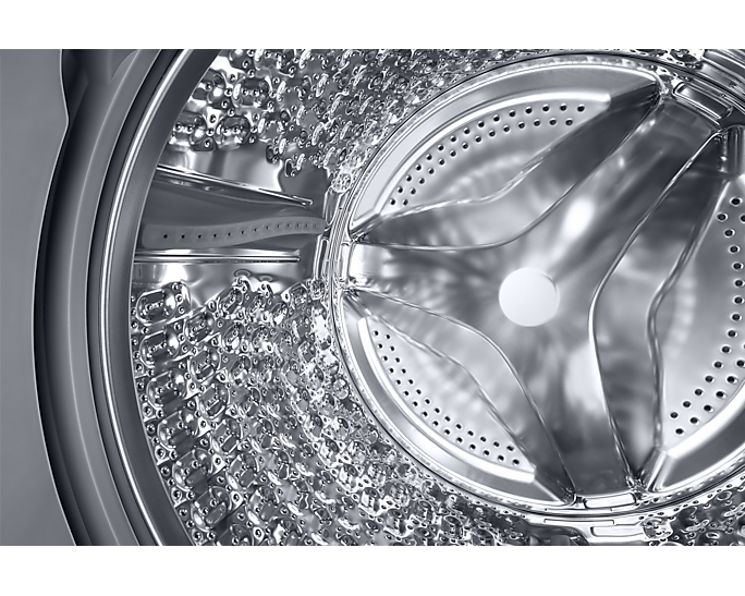 Die Trommelreinigung von Samsung sorgt für eine hygienisch saubere Trommel. Eine intelligente Kombination aus Einweichen, Pulsieren und hoher Drehzahl reinigt die Trommel gründlich und ohne Zugabe von Reinigungsmitteln. Hierbei werden 99,9% der geruchsverursachenden Bakterien aus der Trommel entfernt. Für Komfort, der sich gewaschen hat, teilt dir die Maschine nach jeweils 40 Waschgängen mit, dass eine erneute Reinigung sinnvoll wäre[8]