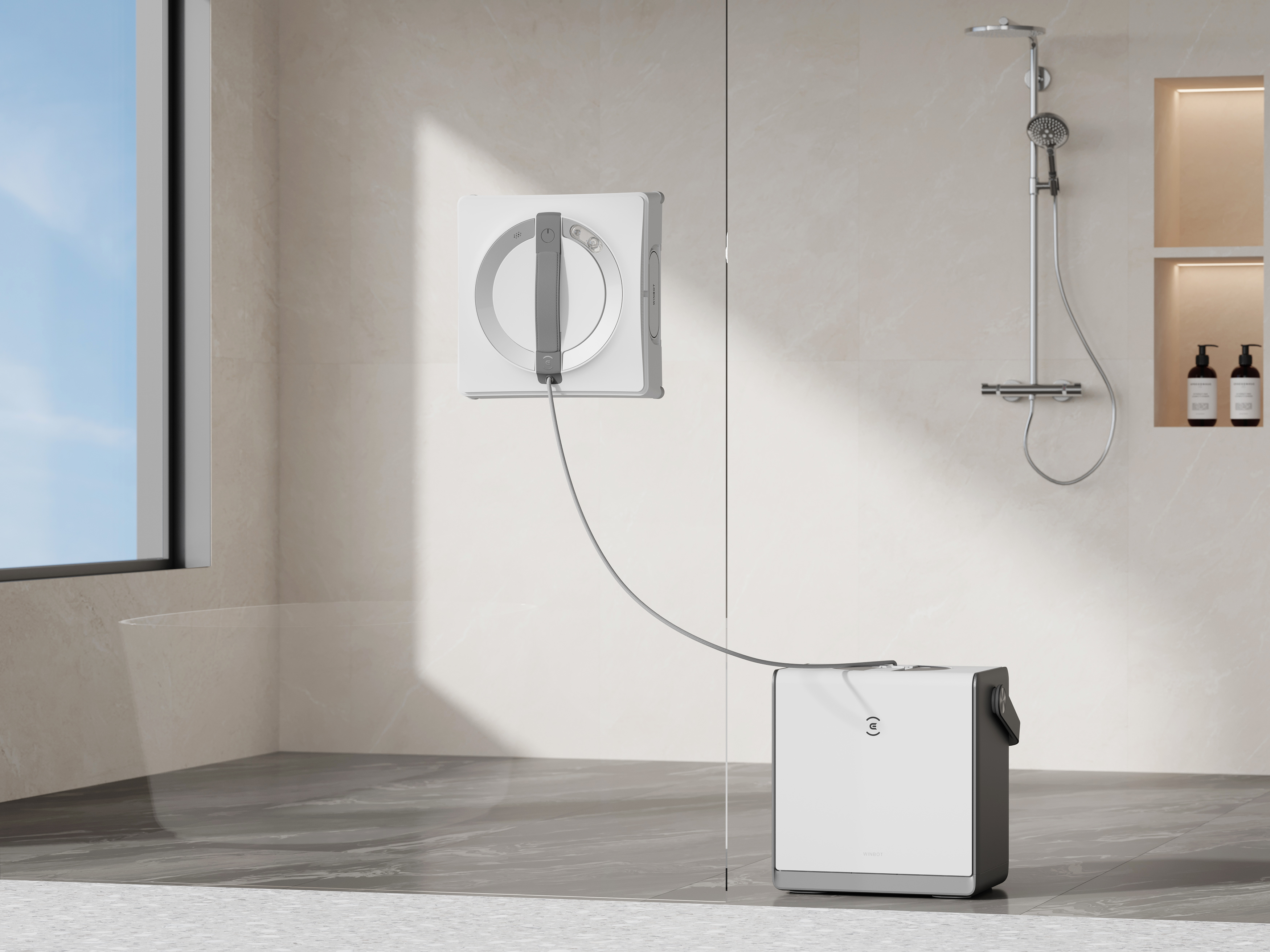 Hochmoderne Fensterreinigungsstation, eine multifunktionale Dockingstation, die die ganze Reinigungsarbeit für dich erledigt WINBOT W2 OMNI stellt die innovative Fensterreinigungsstation vor - eine multifunktionale Dockingstation, die gleichzeitig als Steuerpult, Ladestation, Stabilisator und tragbares Staufach für deine Fensterreinigung dient. Integrierte Batterie mit hoher Ladekapazität Der interne Lithium-Akku mit hoher Ladekapazität sorgt für die ununterbrochene Batterieleistung des WINBOT W2 OMNI und ermöglicht so die Fensterreinigung in Bereichen ohne Zugang zu Steckdosen. Geeignet für alle Reinigungsszenarien, von Innenfenstern bis hin zu Glasflächen im Außenbereich. Eine einzige Ladung reicht für 110 Minuten Nutzung, was einer Fläche von 55 Quadratmetern entspricht. Zwei-in-Eins-Verbundkabel mit Sicherheitsseil und Anschlusskabel Das Verbundsystem von Sicherheitsseil und Anschlusskabel vereint beide Kabel in einem und verbindet alles zu einer aufgeräumten Einheit, die Kabelsalat und Drähte vermeidet. Die Dockingstation ist mit einer automatischen Kabelmanagementfunktion für die Kabelaufwicklung und ein unkompliziertes Verstauen ausgestattet. Automatische Kabelaufwicklung Die Station ist mit einer automatischen Kabelaufwicklung ausgestattet, die das Kabel ordentlich uns sicher einzieht. Die Bedienung war noch nie so einfach. Anti-Absturz-Schutzmechanismus Die 5,2 kg schwere Dockingstation wird durch eine Ansaugkraft von über 800 N unterstützt, damit der WINBOT W2 OMNI auch in extremen Situationen nicht herunterfällt. Das Sicherheitsseil besteht aus einem dreilagigen, langlebigen Verbundmaterial mit einer hohen Zugfestigkeit von bis zu 100 kg (eine Steigerung von 20 kg im Vergleich zum Vormodell). Die Dockingstation ist außerdem mit einem 1 m langen Sicherheitsseil an der Unterseite ausgestattet, das zusätzlichen Schutz bietet. Multi-Funktions-Bedienfeld Das Multifunktions-Bedienfeld verfügt über 6 Funktionen: automatische Kabelaufwicklung, Ein-/Ausschalten, Start/Pause, Auswahl des Reinigungsmodus, Zurück zum Startpunkt und Entriegeln des Saugnapfes - die perfekte Kontrolle aller Funktionen mit nur einem Knopfdruck. Ideal zum einfachen Transportieren und Verstauen Die Dockingstation bietet ein zusätzliches Staufach für den WINBOT W2 und sein Reinigungszubehör. Außerdem ist er mit einem Griff zum einfachen Tragen ausgestattet. Revolutionäres innovatives Reinigungssystem für klarere Fenster als je zuvor Ausgestattet mit der branchenführenden innovativen Fensterreinigungstechnologie von ECOVACS strahlen deine Fenster in jeder Ecke sauberer denn je. Rundum optimierte Drei-Düsen-Weitwinkel-Sprühtechnik mit Nassmopp für die Fensterreinigung Die optimierte Drei-Düsen-Weitwinkel-Sprühtechnologie erzielt in perfekter Abstimmung mit dem Nassmopp eine effiziente und effektive Reinigung. Der Wasserdruck wird mit einer um 90 % höheren Funktionszeit verdoppelt, so dass der gesamte Schmutz mit einem einzigen Wisch aufgelöst und abgewischt wird. Intelligentes Klettersystem zur Vermeidung von Abrutschen Das intelligente Klettersystem wird von einem optmierten Synchronriemen mit besonders hoher Wasser- und Reibungsbeständigkeit angetrieben, wodurch eine stabile Bewegung ohne Rutschen gewährleistet wird. Selbst beim Nasswischen reduziert das externe Antriebsrad den Wasserkontakt und sorgt für mehr Stabilität beim Hochklettern. So wird sichergestellt, dass sich der WINBOT W2 OMNI jederzeit reibungslos und gleichmäßig bewegen kann. Steigerung der Effizienz um 30 % durch die brandneue intelligente WIN-SLAM 4.0-Reinigungsplanung Der WINBOT W2 OMNI hat einen brandneuen, verbesserten bürstenlosen Motor und erzielt dadurch in Kombination mit der intelligenten WIN-SLAM 4.0-Reinigungsplanung eine bis um 30 % höhere Reinigungseffizienz. Durch intelligente Planung wird das Reinigungsmuster optimiert, um effizientes Drehen und eine verbesserte Kantenerkennung zu ermöglichen. 12-stufiger Schutz für mehr Sicherheit Mit der kombinierten Hardware- und Softwareunterstützung des 12-stufigen Schutzsystems bietet der WINBOT W2 OMNI ein Höchstmaß an Sicherheit und Sauberkeit bei der Fensterreinigung. 8-Hardware-basierte Absturzsicherungsmaßnahmen 8 Hardware-basierte Absturzsicherungsfunktionen, wie z. B. automatischer Luftdruckausgleich, optimierte Ansaugdruckleistung von 2800 Pa, schwimmend aufgehängte Reinigungstuchplatte und Design.Mit seinen mehr