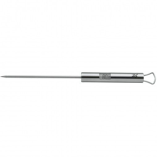 rnEigenschaften: Das digitale Thermometer ist in der Küche vielseitig einsetzbar. Sie können es z. B. für heiße und kalte Getränke und Speisen verwenden. Die extrem schnelle Reaktions- und Messzeit von 4-10 Sekunden zeichnet das Thermometer aus. Sie können Ihre Speise und Getränke in Celcius oder Fahrenheit messen. Der Messbereich liegt zwischen -40 bis +200 °C bzw. -40 bis +392 °F und weicht maximal +_ 1°C von der tatsächlichen Temperatur ab. Das nummerische LCD Display hat eine Hintergrundbeleuchtung und ist somit extrem hell. Funktionsweise: Das Thermoter darf nicht im geschlossenen Backofen verwendet werden. Nur einige Sekunden in die Speise stecken oder halten - fertig! Das Thermometer muss von Hand mit einem Tuch gereinigt werden - NICHT spülmaschinenfest.rnrn Hauptmerkmale rn rn Technische Details rn Typ Digital rn Temperatur Range (T-T) 40 - 200 °C rn Temperaturbereich (T-T) 40 - 392 °F rn Temperaturmesseinheit F, °C rn Produktfarbe Edelstahl rn Materialien