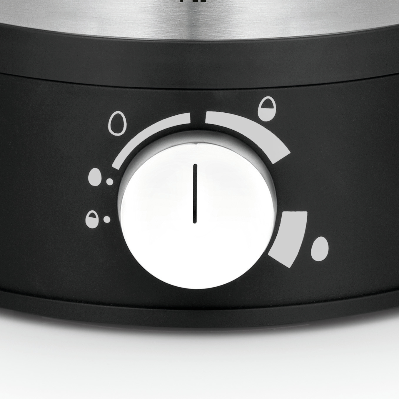 für 1 - 7 Eier, Cromargan matt, Kochzeitelektronik, Weich-, Mittel- und Hartkocheinstellung, Fortkochstufe, automatischer Signalton bei Kochende, beleuchteter Ein- / Ausschalter, Edelstahlheizspirale, Kabelaufwicklung, Überhitzungsschutz, 350 Watt, Schukostecker CEE 7/7cromargan matt