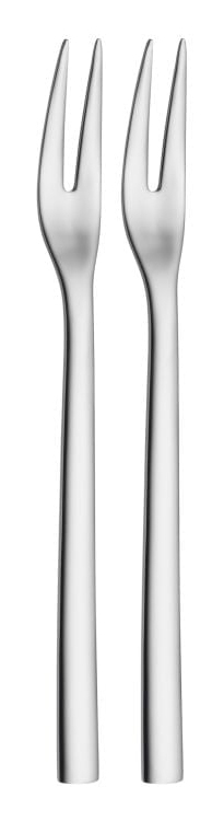 Für alle Fälle gut gerüstet: mit Nuova Spezialbesteck von WMF. Ob Carpaccio, Rinderbraten, Parmaschinken, gebratene Zucchinischeiben, Käsewürfel oder Lachs: die handlichen Nuova Serviergabeln des 2-teiligen Sets dürfen auf einem stilvoll gedeckten Tisch oder am Buffet einfach nicht fehlen. Die markanten zwei Zacken der Serviergabel sorgen dabei stets für sicheres Servieren. Das 2-teilige Nuova Serviergabel-Set wird in einer hochwertigen, illustrierten Faltschachtel geliefert, die auch als Geschenkverpackung eine gute Figur macht. Die Besteck-Kollektion Nuova von WMF umfasst nahezu 50 Spezialbesteckteile - von der Pastazange bis zum Honiglöffel, vom Fischbesteck bis zu zum Käsemesser. Zeitlos-schlicht designed, harmoniert Nuova nicht nur mit jedem Ambiente, sondern auch mit jedem anderen Besteck. Dabei liegen alle Besteckteile einfach perfekt in der Hand und überzeugen mit höchster Funktionalität im Alltag. Gefertigt aus hochwertigem Cromargan®: Edelstahl Rostfrei 18/10 ist Nuova selbstverständlich pflegeleicht spülmaschinenfest, völlig geschmacksneutral, sehr strapazierfähig und resistent gegen Speisesäuren.