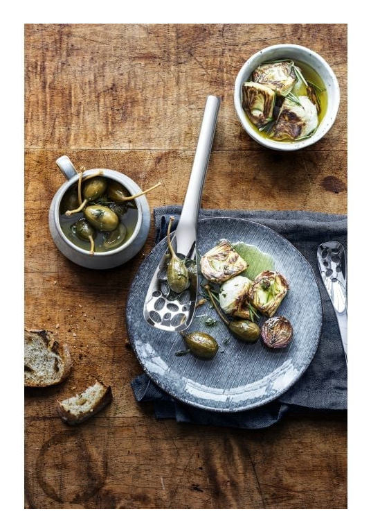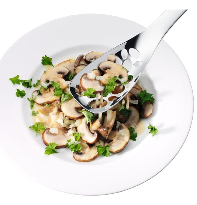Für alle Fälle gut gerüstet: mit Nuova Spezialbesteck von WMF. Deutlich größer als ein Menuelöffel, eignet sich der Nuova Servierlöffel perfekt zum Servieren von Antipasti, Gemüsegerichten, Aufläufen und klassischen Beilagen wie Reis und Kartoffeln. Seine Laffe ist rund und großzügig bemessen, um Speisen besonders einfach aufzunehmen und schließlich auf dem Teller zu platzieren. Dazu ist sie perforiert, sodass Flüssigkeiten und Fett einfach ablaufen können. Der 25 cm lange Nuova Servierlöffel wird in einer hochwertigen, illustrierten Faltschachtel geliefert, die auch als Geschenkverpackung eine gute Figur macht. Die Besteck-Kollektion Nuova von WMF umfasst nahezu 50 Spezialbesteckteile - von der Pastazange bis zum Honiglöffel, vom Fischbesteck bis zu zum Käsemesser. Zeitlos-schlicht designed, harmoniert Nuova nicht nur mit jedem Ambiente, sondern auch mit jedem anderen Besteck. Dabei liegen alle Besteckteile einfach perfekt in der Hand und überzeugen mit höchster Funktionalität im Alltag. Gefertigt aus hochwertigem Cromargan®: Edelstahl Rostfrei 18/10 ist Nuova selbstverständlich pflegeleicht spülmaschinenfest, völlig geschmacksneutral, sehr strapazierfähig und resistent gegen Speisesäuren.
