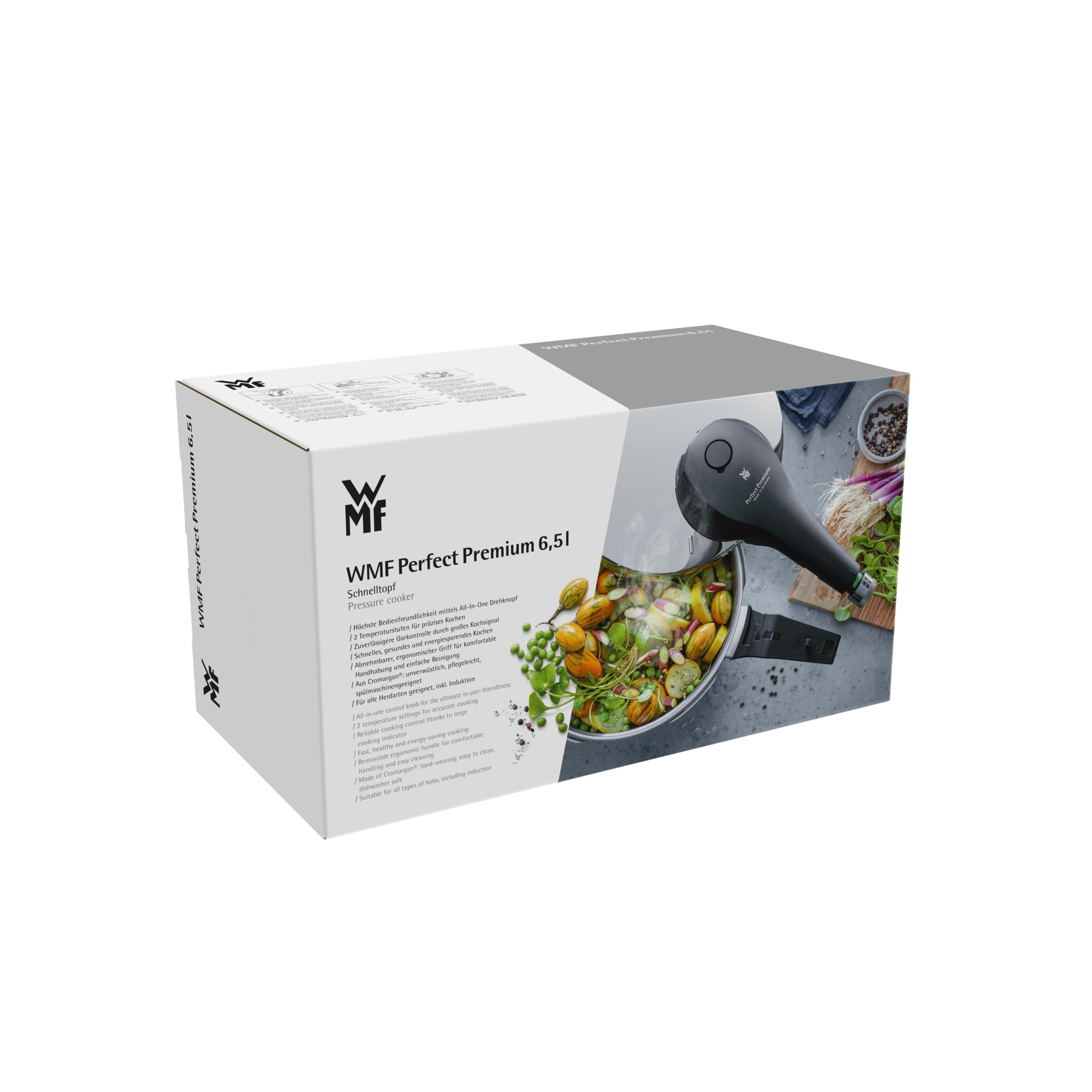 Alles im Griff mit dem All-In-One-Bedienknopf. Die Perfect Premium Schnelltöpfe von WMF begeistern mit kürzesten Kochzeiten und geschmacksintensiven Ergebnissen. Im Vergleich bis zu 70 Prozent* schneller als mit herkömmlichen Kochtöpfen, gelingen damit Chili con Carne, köstliche Risottos, Suppen, Currys und sogar leckere Nachspeisen. Dazu bleibt dabei die bis zu 1,7-fache Menge Vitamin C* erhalten. Zudem ist der Perfect Premium dank seines innovativen All-In-One-Bedienknopfs zur Steuerung aller Funktionen, sehr komfortabel zu bedienen und durch das 7-stufige Sicherheitssystem mit extra sanfter Abdampffunktion auch absolut sicher im Handling. Gefertigt aus genauso strapazierfähigem wie edlem und spülmaschinengeeignetem Cromargan®: Edelstahl Rostfrei 18/10, verfügt er außerdem über den für alle Herdarten geeigneten TransTherm®-Allherdboden mit optimaler Wärmeverteilung und ?speicherung für energiesparendes Kochen.