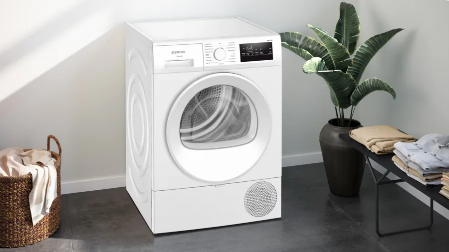 Trockner WT45HVA4 von Siemens Siemens bietet mit dem Modell WT45HVA4 einen Wärmepumpentrockner. Mit einer Betriebslautstärke von 62 dB ist der Siemens WT45HVA4 ausgesprochen leise. Für Familien ist das Standgerät mit einem Fassungsvermögen von 8 kg perfekt. Die Programme Empfindliche Kleidung muss vorsichtig behandelt werden, dafür sind das Fein-Programm und das Schon-Programm gedacht. Da unterschiedliche Textilien auch eine unterschiedliche Behandlung brauchen, gibt es jeweils eigene Programme für Koch- und Buntwäsche, Outdoor- und Sportbekleidung, Pflegeleichtes, Dessous, Baumwolle, Wolle, Blusen und Hemden sowie Handtücher. Das Extra-Trocken-Programm ist ebenso eine Option des Siemens WT45HVA4. Wie viel Wasser noch in der Wäsche ist, wird fortlaufend durch den Feuchtigkeitssensor ermittelt. Dadurch zeichnet sich der Wäschetrockner außerdem aus Der Tür-Anschlag ist rechts. Die Kindersicherung verhindert unliebsame Überraschungen. Die Restzeitanzeige verrät Ihnen, wann Sie die Wäsche aufhängen können. Das Modell trägt die Energieeffizienzklasse D und ist mit der Kondensationseffizienzklasse C ausgezeichnet. Unsere Kaufempfehlung Wie geschaffen ist der Siemens WT45HVA4 für alle, die sich einen Wärmepumpentrockner mit Kindersicherung wünschen.