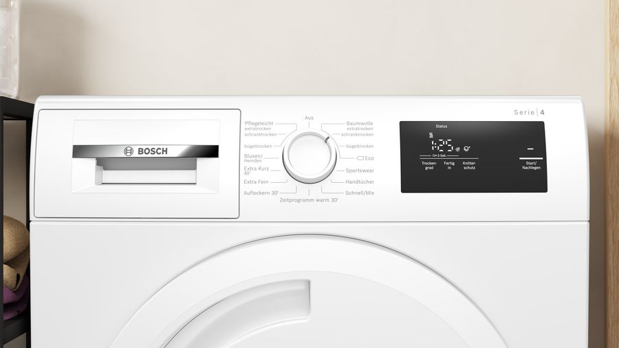 Bosch-Trockner WTH83003 Das Modell WTH83003 ist ein Wärmepumpentrockner von Bosch. Mit einem Fassungsvermögen von 7 kg eignet sich das Standgerät für Familien. Die Programme Das Kurz-Programm verschafft Zeitersparnis. Schonend behandelt werden muss empfindliche Kleidung, dafür gibt es das Fein-Programm. Für Wolle, Outdoor- und Sportbekleidung, Blusen und Hemden, Handtücher, Mischwäsche, Pflegeleichtes sowie Baumwolle hat das Gerät jeweils eigene Programme. Weitere Eigenschaften des Wärmepumpentrockners Der Tür-Anschlag befindet sich rechts. Die Kindersicherung bietet extra viel Sicherheit. Sie wollen einen Trockner, der so flexibel ist wie Sie? Dann ist das Feature Startzeitvorwahl nennenswert. Hilfreiche Infos wie die Restzeit werden Ihnen auf dem Display angezeigt. Das Modell trägt die Energieeffizienzklasse F und ist mit der Kondensationseffizienzklasse D ausgezeichnet. Unsere Kaufempfehlung Sie suchen einen Wärmepumpentrockner, der über eine Kindersicherung verfügt? Dann haben Sie mit dem Bosch WTH83003 das richtige Modell gefunden.