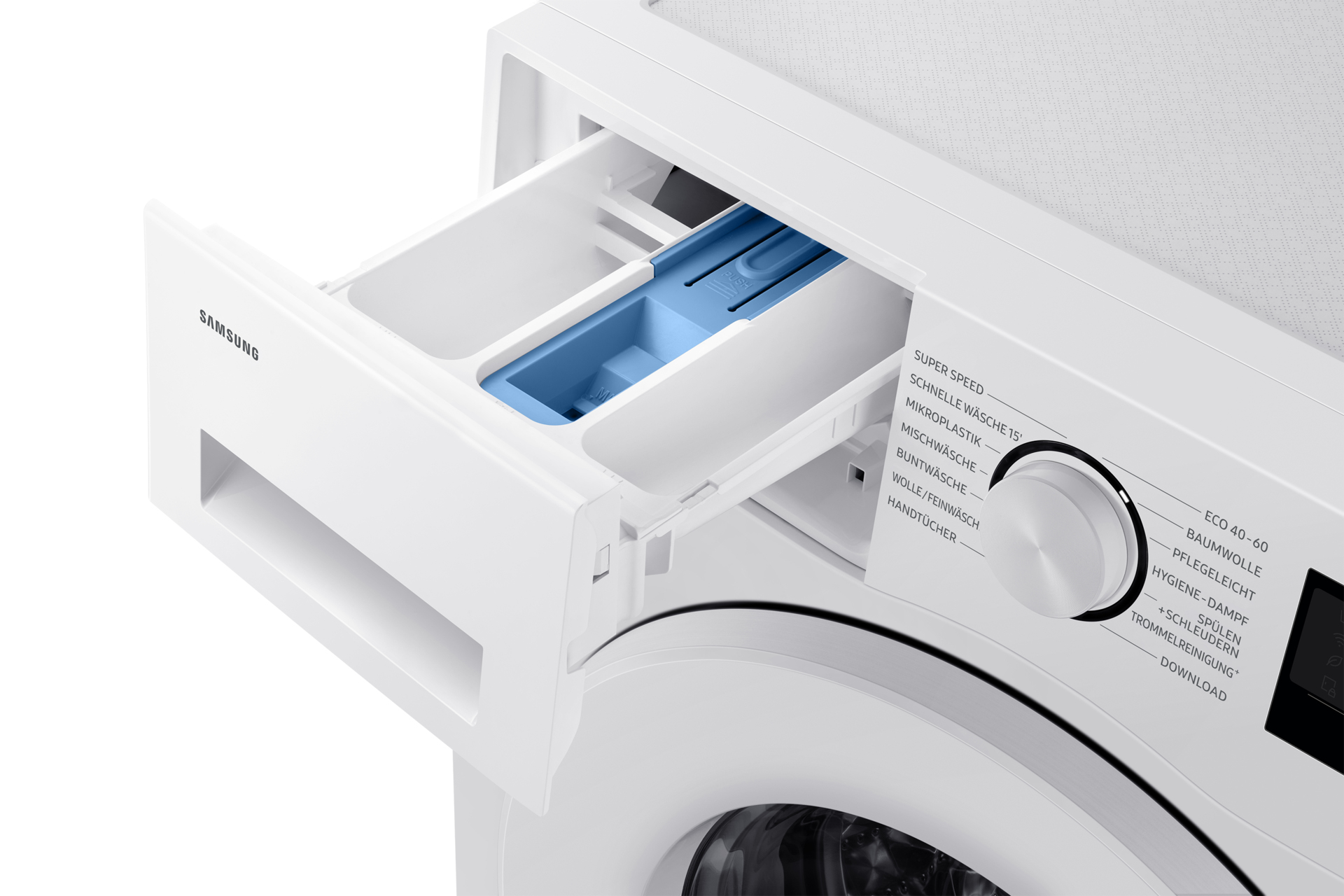 Mit der selbstreinigenden Waschmittelschublade kannst du dir die Reinigung der Waschmittelschublade sparen. Ein spezielles Sprühverfahren sorgt dafür, dass deine Waschmittelschublade automatisch bei jedem Waschgang gereinigt wird.