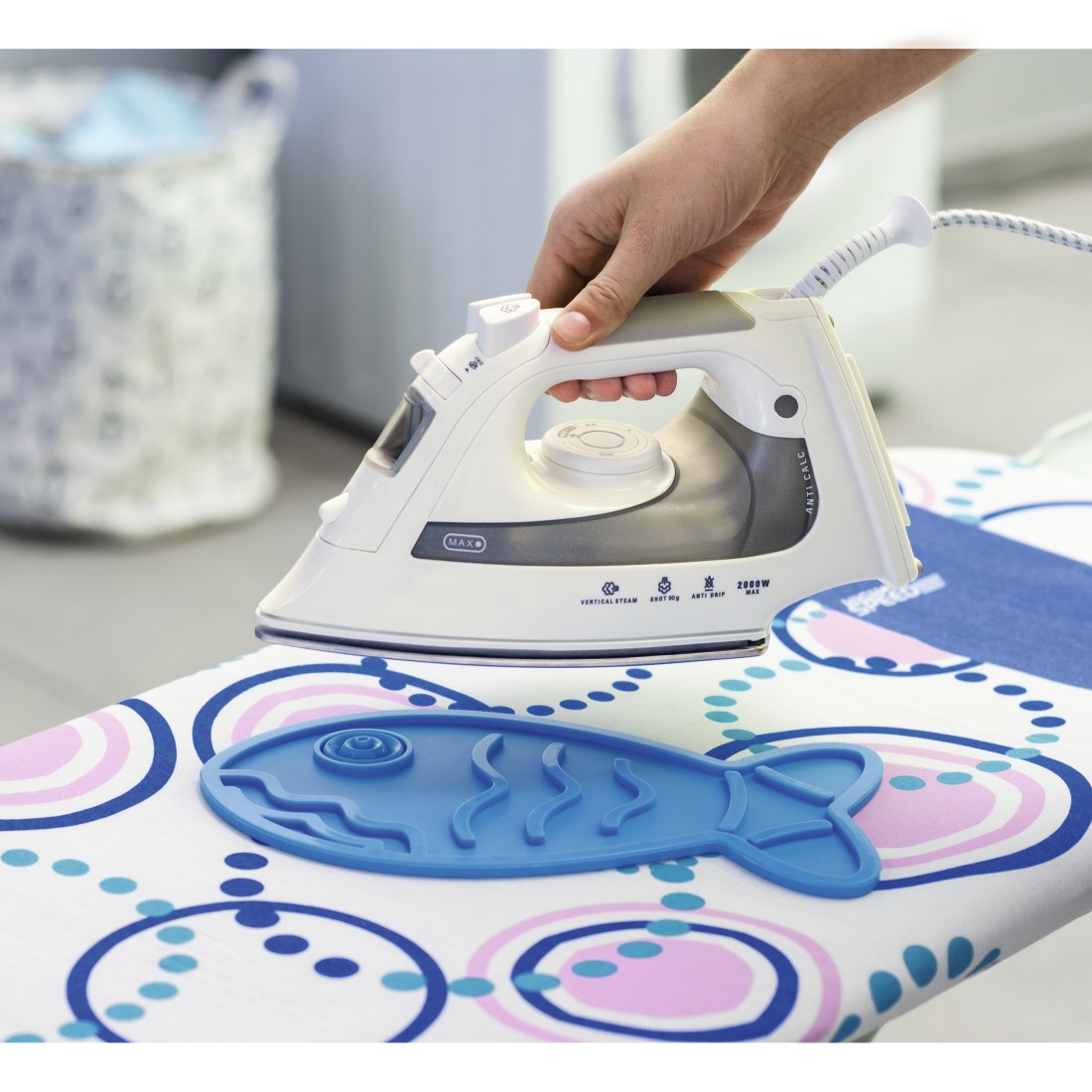 Für ein gefahrloses, kurzfristiges Abstellen des Bügeleisens auf die Sohle auf dem Bügelbrett. Features: hitzebeständige Silikonunterlage bis 250°C langlebige, flexible Ablage im trendigen Design verhindert Sohlenkratzer, Brandstellen auf dem Bezug oder der Tischplatte mit Trichter zum Befüllen des Bügeleisen-Wassertanks sicherer Stand durch Antirutsch-Wellen extrem pflegeleicht, da leicht zu reinigen Technische Daten: Material: Silikon Maße: 115x280x5 mm Farbe: blau