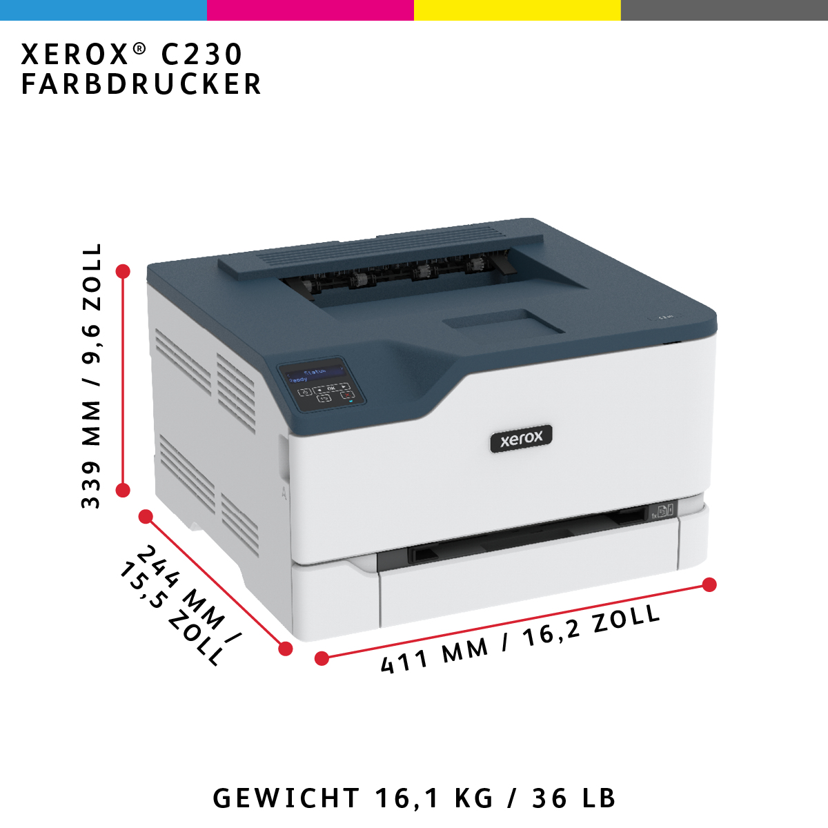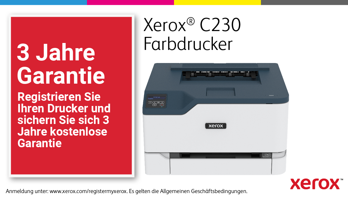 - Kapazität der vorinstallierten CMYK-Starter-Druckmodule: 500 Druckseiten