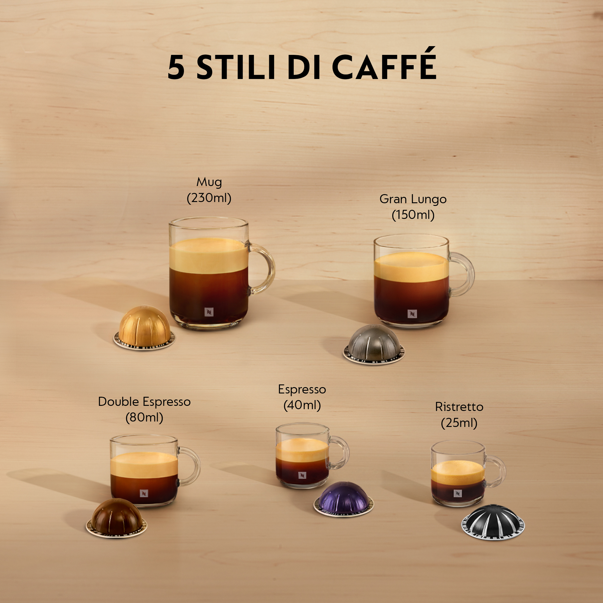 Die neueste Maschineninnovation Vertuo Pop von Nespresso besticht durch ihr neuartiges Kapselsystem für besonders aromareiche große Kaffees. Mit nur 25 cm Höhe ist die Vertuo Pop extrem kompakt und findet somit Platz in jeder Küche.Die intuitiven Bedien-Freundlichkeit und die moderne Farbe runden dieses stylische neue System ab. 4 verschiedene Tassengrößen vom Espresso bis großem Mug machen die Vertuo Pop zur perfekten Kaffeemaschine für jeden Anlass.